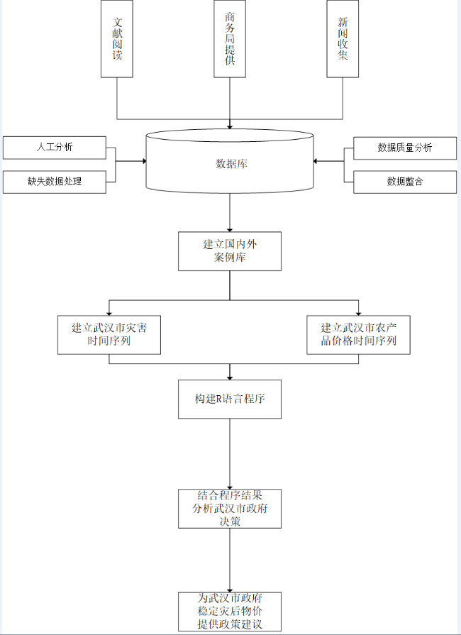 意义:大型突发自然灾害的发生必定会引起严重社会的恐慌。公众在此刻最担心的问题就是生命安全的问题,而最基本的生命保障条件其中就包含了“吃”这一项。如果在突发自然灾害后物价猛涨,居民在遭受自然灾害带来的经济损失之后还要面对不法商家恶意哄抬物价的后果,食不果腹必定会制造出更多的社会恐慌——甚至可能出现暴力犯罪的情况。倘若政府能够根据分析自然灾害对农产品物价的影响来制定相关政策,稳定当地物价,减少不必要的经济损失,那么当地居民因为物价猛涨而带来的恐慌也会随之消失。在基本的吃住问题得到妥善解决后,民众就能更快的重新投入到生产工作中去,帮助当地实现经济重建的工作。 本文拟通过根据武汉市农产品价格的时间序列数据,结合自然灾害事件发生的时间序列数据,分析自然灾害对农产品价格变化的影响。一方面,通过文献阅读,资料查新等收集国内外自然灾害对农产品价格的影响的报道与研究,分析其背景、原因及影响。另一方面,结合武汉市价格调控政策,分析政策因素对自然灾害后农产品价格的影响。 研究现状: 1、国内研究现状 杨雪晴在《云南省干旱灾害对当地农产品价格变化影响的实证研究——基于16哥地州的面板数据》一文中,根据云南省2003—2016年的统计年鉴等相关资料,利用面板数据模型,分析干旱灾害对云南省农产品价格变化的影响,并提出可行建议,以期为云南省农业的可持续发展和科学决策提供借鉴。结果表明,干旱灾害的频繁发生,是导致云南省农产品价格变化的最主要因素,且干旱灾害对农产品价格具 有显著的制约作用。此外,云南省年平均降水量每减少100 mm,全省农产品价格降低11.23%,并且在不同的地州,这种影响程度大不相同,即不同的地州抵抗干旱灾害影响农产品价格变动的能力大不相同,其中能力最强的是西双版纳自治州,最弱的是临沧市的结论。战金艳等人在《自然灾害对农产品市场价格影响研究——以汶川地震为例》一文中,通过构建一个用于分析自然灾害对区域农畜产品市场价格影响的自然灾害影响农业生产的分析模型,并基于多种统计数据和调差资料模拟了汶川大地震对全国农畜产品市场价格的影响。结果表明,汶川地震对全国水稻、小麦、猪肉等主要农畜产品市场价格变动影响甚微,没有影响到全国农业生产的基准面,却毋庸置疑的的对当地农业生产造成了显著影响。吴亦卓等人在《常州市暴雨洪涝灾害对当地农产品价格影响的实证研究》一文中以常州市为例,通过多种统计模型和回归分析对常州市暴雨洪涝灾害给当地农产品价格带来的影响进行了实证分析。通过研究表明,常州市暴雨洪涝灾害对当地水稻、玉米、蔬菜和肉类等主要农产品的市场价格造成了一定程度的影响。 2、国外研究现状 Mario Arturo Ruiz Estrada等人在The Application Of The Minimum Food Security QuotaIn Response To A Potential Natural Disaster: The Case Of Malaysia一文中,通过构建应用MFS-Quota模型来测试马来西亚的粮食储备和供应,应对可能因为任何潜在自然灾害而带来的影响国家社会经济和政治福祉的危害,诸如食品价格上涨、食品供给短缺等问题,从而维持在突发自然灾害来临时上涨的食品价格。Renato Vargas等人在Climate risk and food availability in Guatemala一文中,通过使用可计算的一般均衡模型来模拟危地马拉气候变化导致的干旱和农业生产力下降的影响,使得农业生产力下降以及畜牧产量的发福下降,并观察得到食品价格飞速上涨的结果。 综合以上文献,国内学者更多的是通过实证分析,精确到具体农产品的价格上升,以分析灾害所带来经济影响。而国外学者则更多的是通过构建模型,模拟灾害所带来的影响,以提出建议。