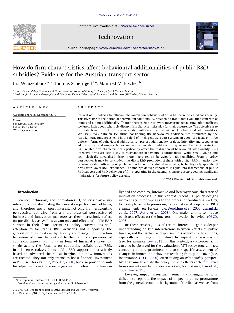 翻译时出错根据不同的企业特征,着眼于不同企业的行为追加驱动因素特点,特别注重研发相关的特色。 在这样做的过程中,我们分析了可能来自不同企业特征的公共研发资金的影响(Lee,2011),依赖于广泛认可的异构创新过程的认可,这些创新过程在不同类型的行为者之间可能会有很大差异 (Fischer,2001; Pavitt,2005)。目标是估计不同企业特征如何影响行为追加的实现。我们使用155家企业的调查数据,并考虑了2006年在奥地利智能交通系统领域授予R&D补贴政策计划智能交通系统和服务-IV2S的具体形式的行为效应。重点是调查 - 项目额外性,规模附加性和合作额外性所捕获的三种不同形式的行为附加性。项目额外性指的是,如果公众支持被拒绝,对象将被取消或未启动的情况。缩放额外性描述了资助项目的规模大于先前预期的情况,而合作额外性则表示公共研发支持对企业协作和联网行为的影响. 通过这一研究产生了关于公共研发补贴的行为效应在特定企业特征方面不同的新颖和重要的实证观点,因此显著增加了对本研究领域稀缺的实证文献的价值。
