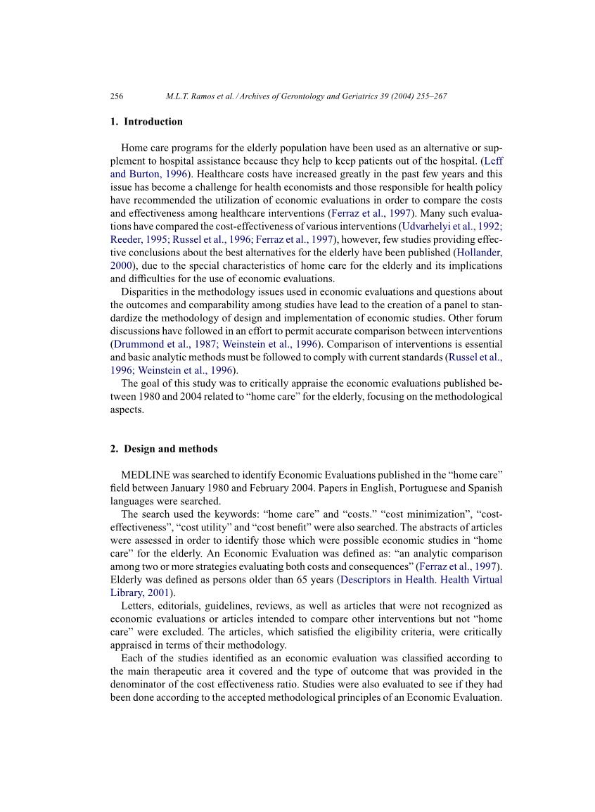 老年人的家庭护理计划已被用来替代或补充医院的援助,因为它们有助于病人离开医院。 (莱夫 和伯顿,1996年)。 在过去几年里,医疗保健费用大幅增加,这一问题已成为卫生经济学家的一个挑战,负责卫生政策的人员建议利用经济评估来比较医疗保健干预措施的成本和有效性(Ferraz等人,1997)。 许多此类评估比较了各种干预措施的成本效益(Udvarhelyi等,1992; Reeder,1995; Russel等,1996; Ferraz等,1997), 然而,很少有研究提供有关老年人最佳替代品的有效结论(霍兰德, 2000), 由于家庭护理对老年人的特殊性及其对使用经济评估的影响和困难。