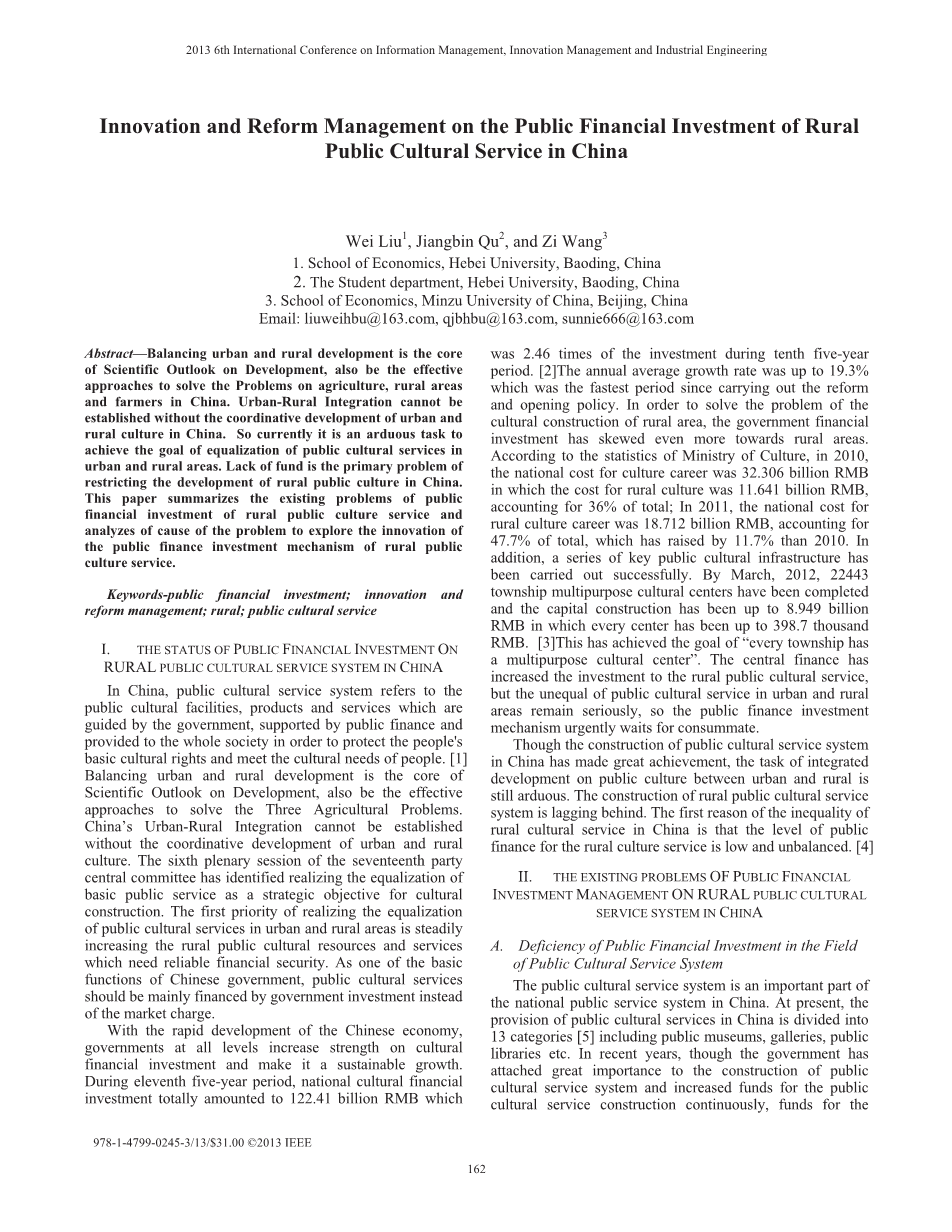 关键词:公共财政投资;创新与改革管理;农村;公共文化服务