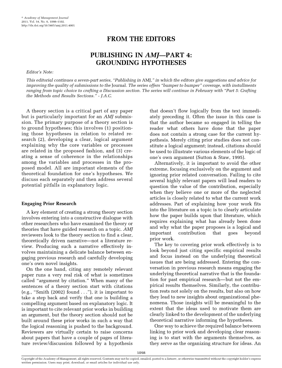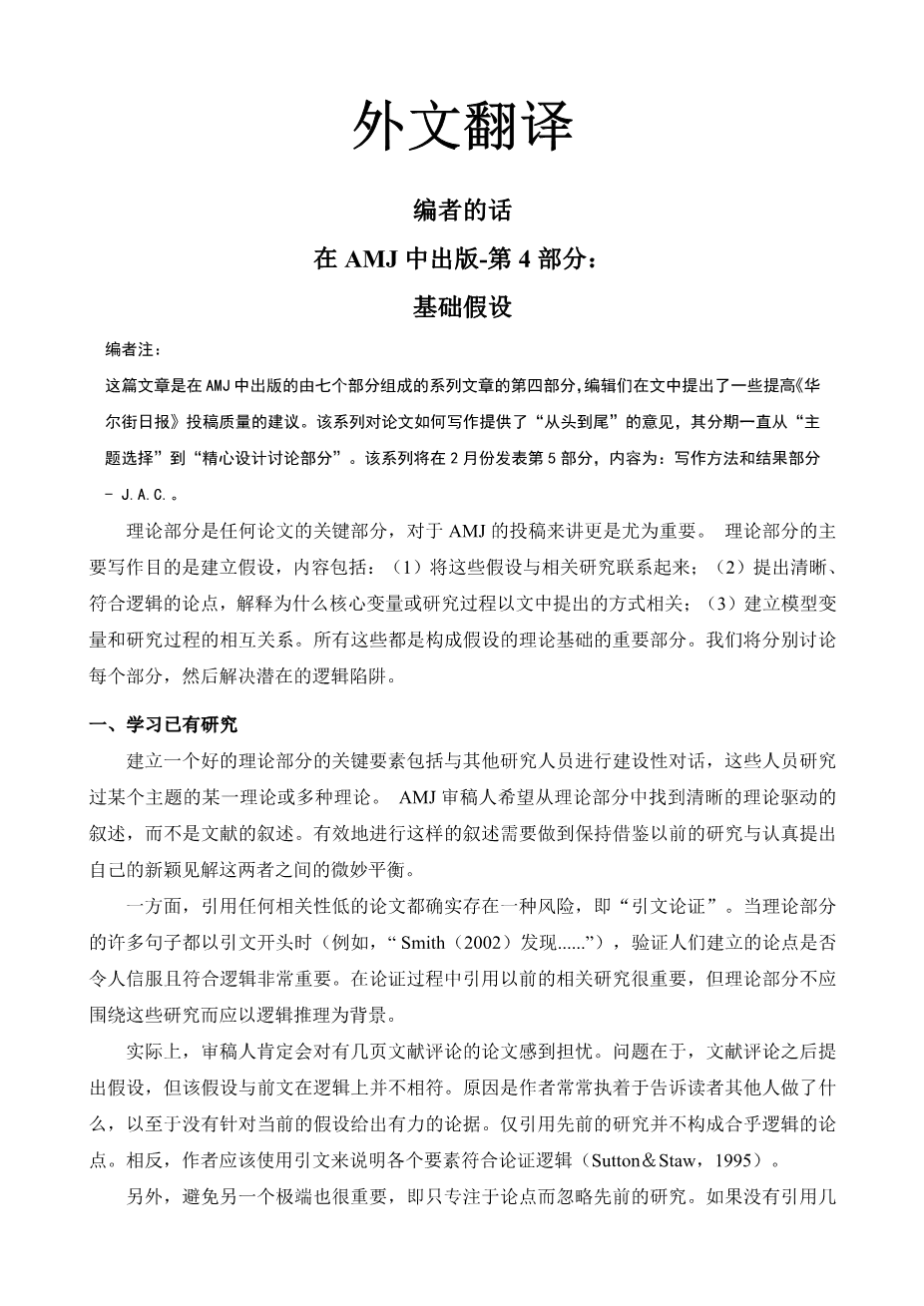 编者的话. 在AMJ中出版-第4部分: 基础假设外文翻译资料