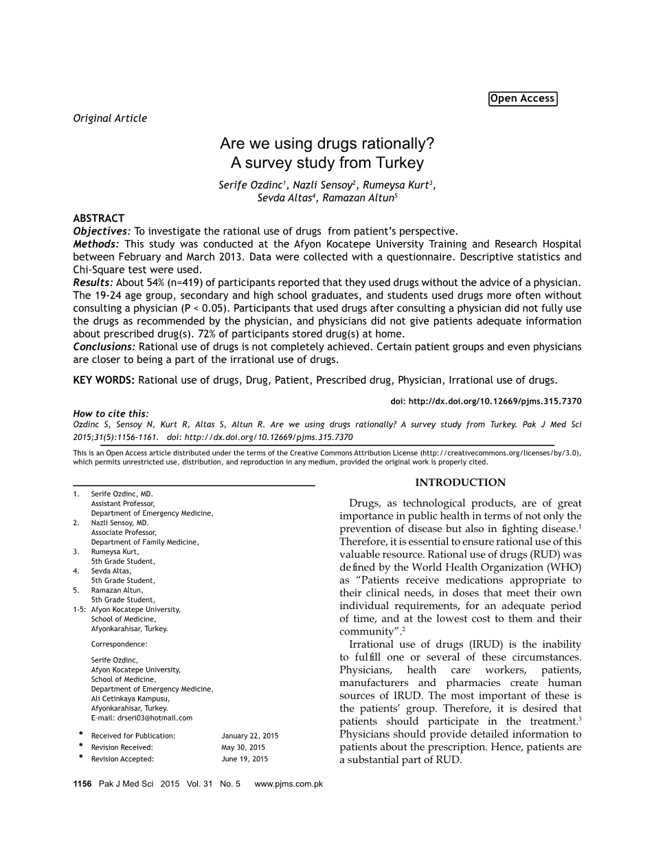 我们是否理性地使用药物?来自土耳其的一项调查研究外文翻译资料