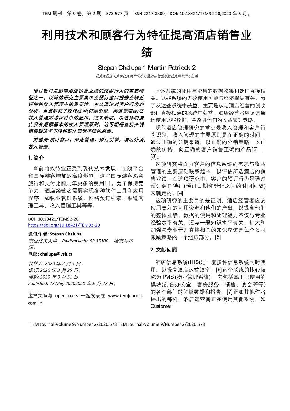 利用技术和顾客行为特征提高酒店销售业绩外文翻译资料