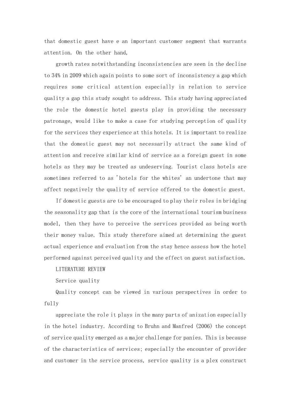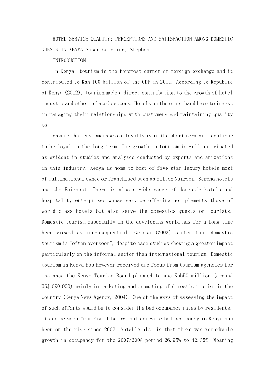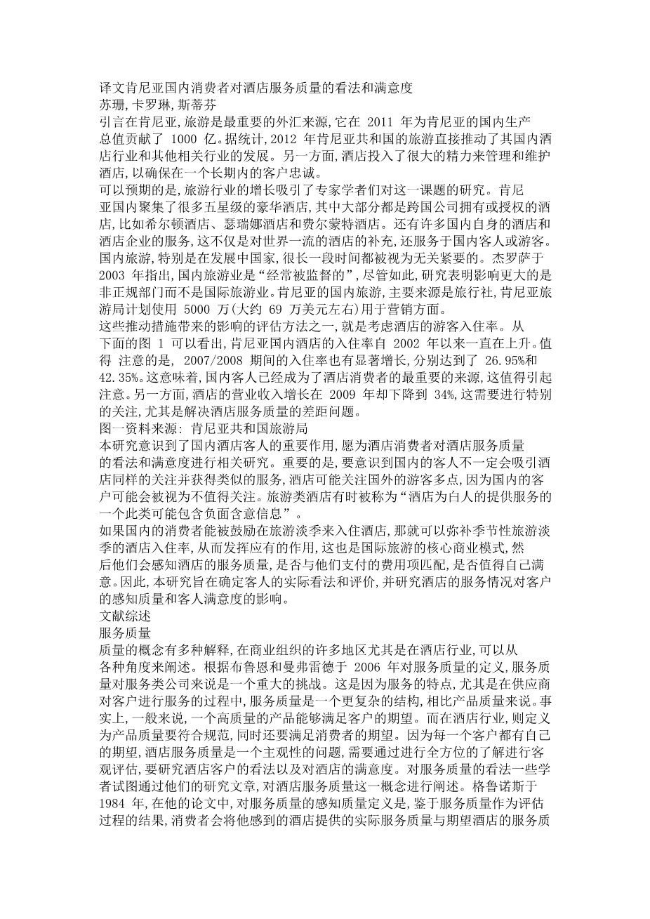 肯尼亚国内消费者对酒店服务质量的看法和满意度外文翻译资料
