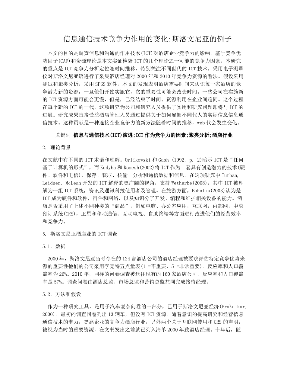 信息通信技术竞争力作用的变化:斯洛文尼亚的例子外文翻译资料