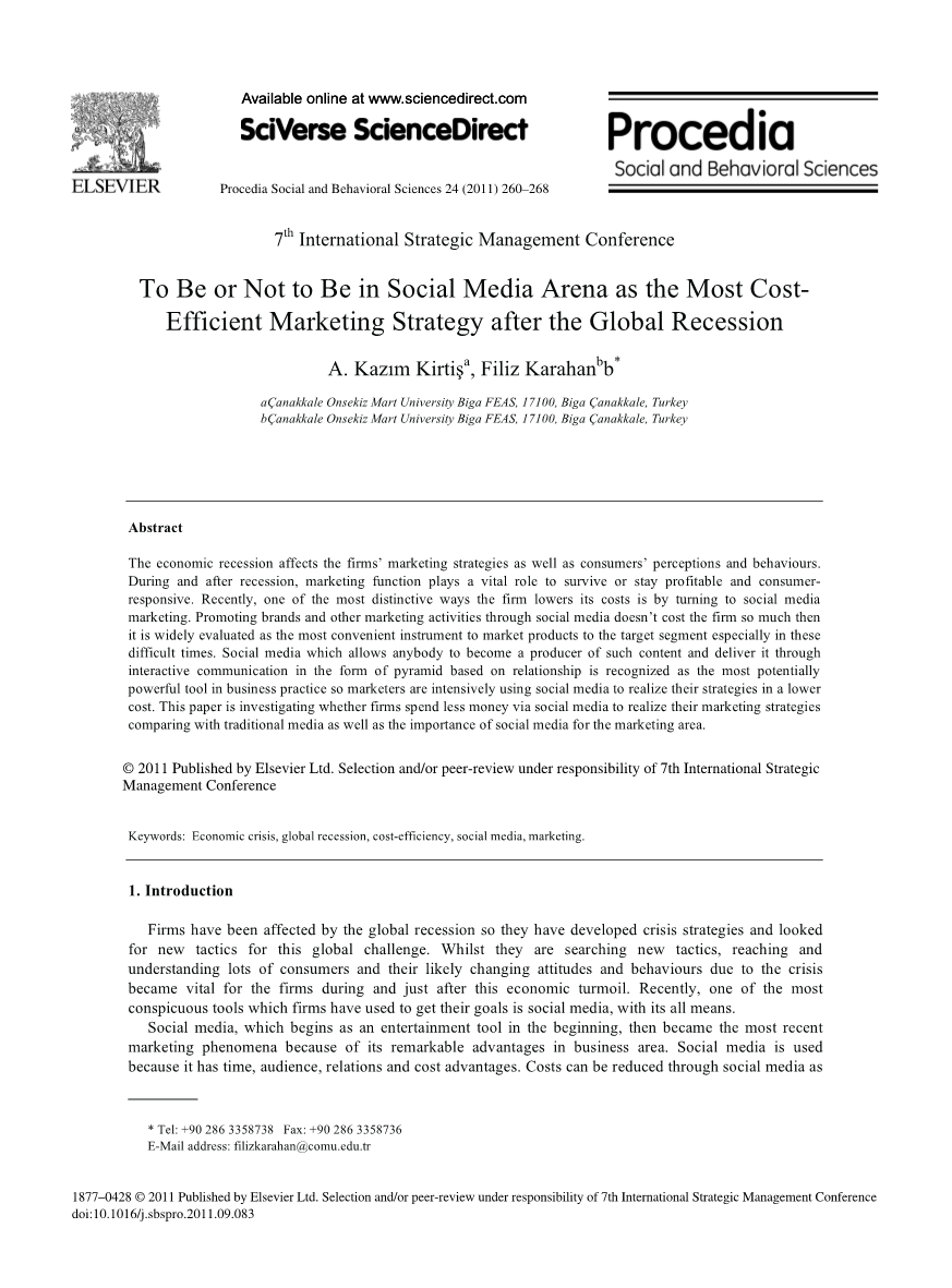 关键词:经济危机,全球经济衰退,成本效益,社交媒体,营销