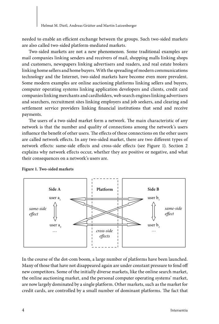 在网络热潮中,出现了大量的平台。许多没有再次消失的公司承受着不断的压力,要抵御新的竞争对手。一些最初多样化的市场,如在线搜索市场、在线拍卖市场和个人电脑操作系统市场,现在主要由一个平台主导。其他市场,如信用卡市场,则由少数占主导地位的平台控制,事实上行业集中度与许多双边市场一样高,表明了能够在双边市场中捍卫自己的地位的重要性。
