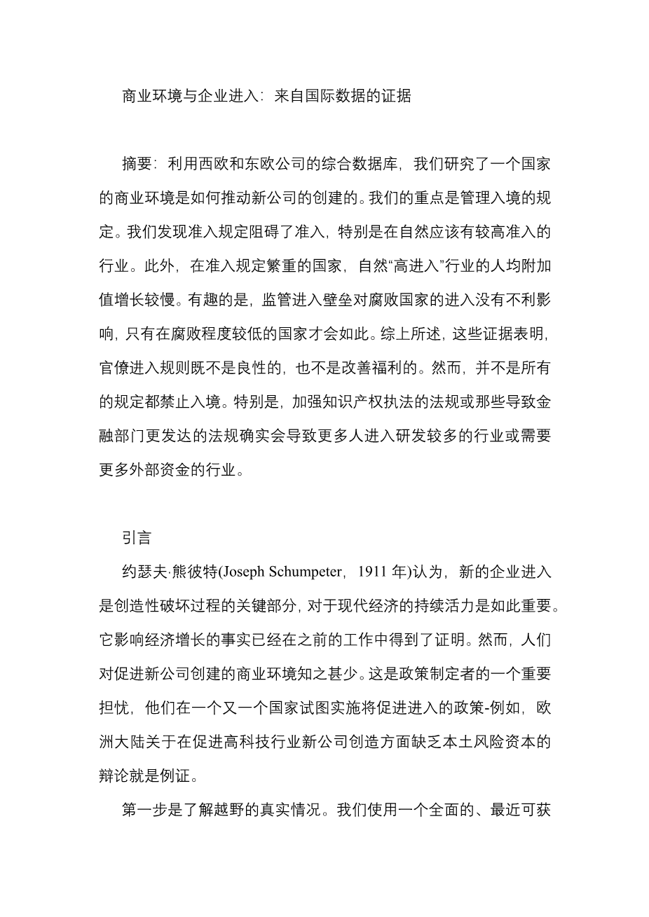 商业环境与企业进入:来自国际数据的证据外文翻译资料