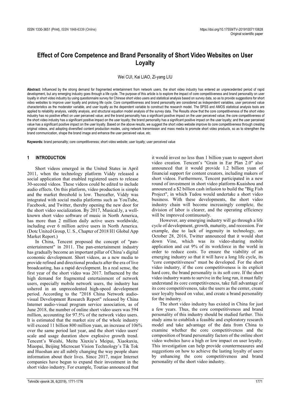 短视频网站核心竞争力和品牌个性对用户忠诚度的影响外文翻译资料