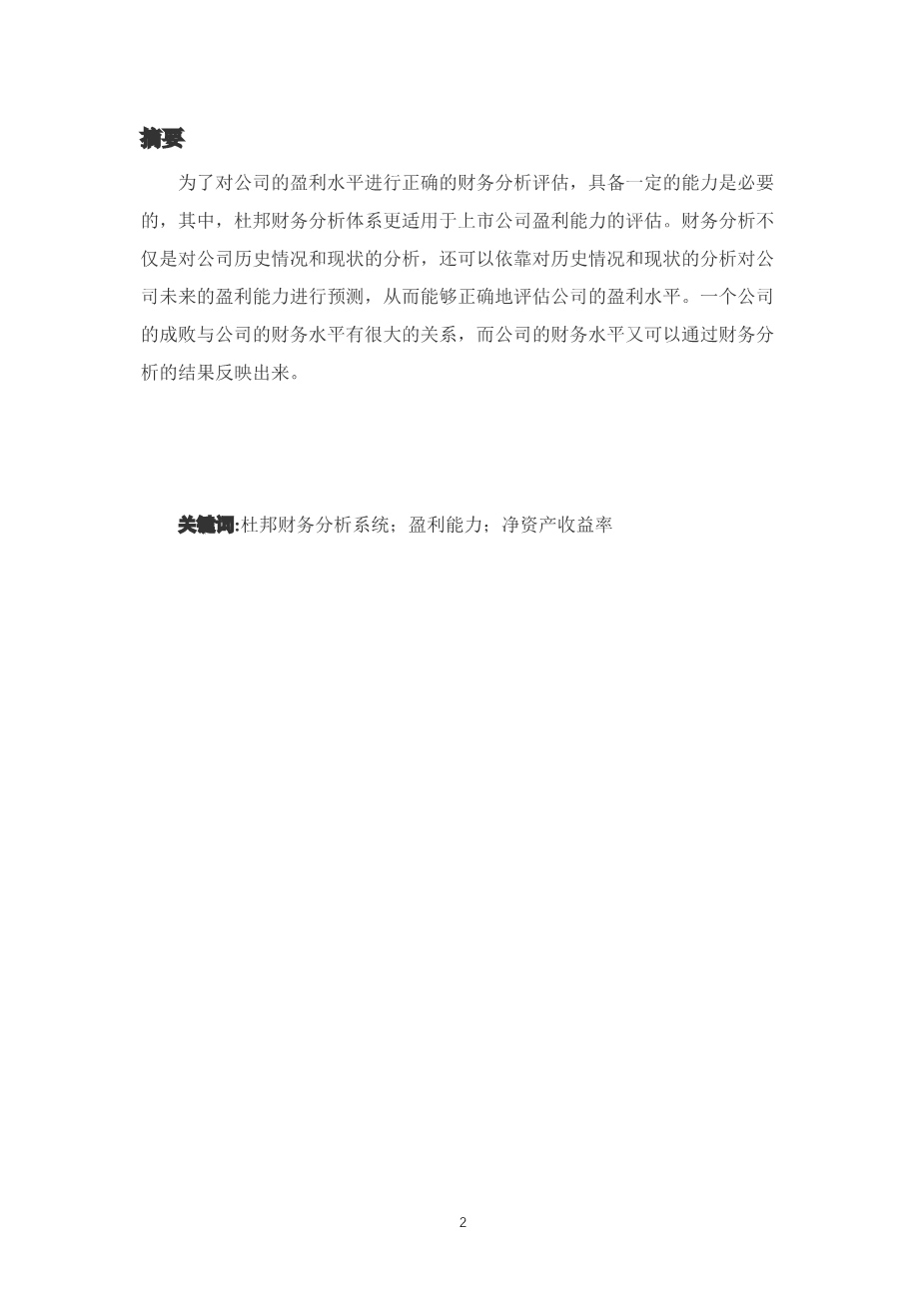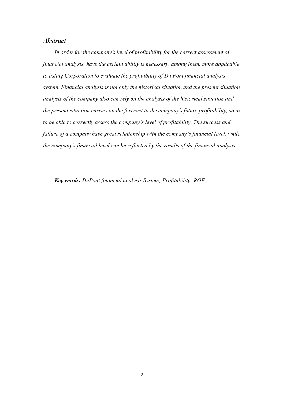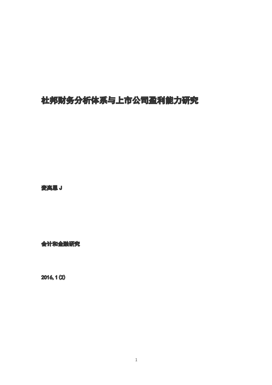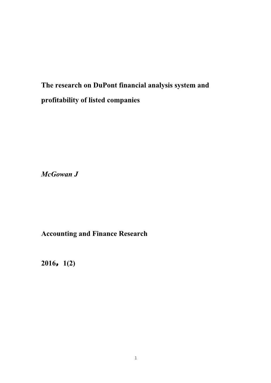 杜邦财务分析体系与上市公司盈利能力研究外文翻译资料