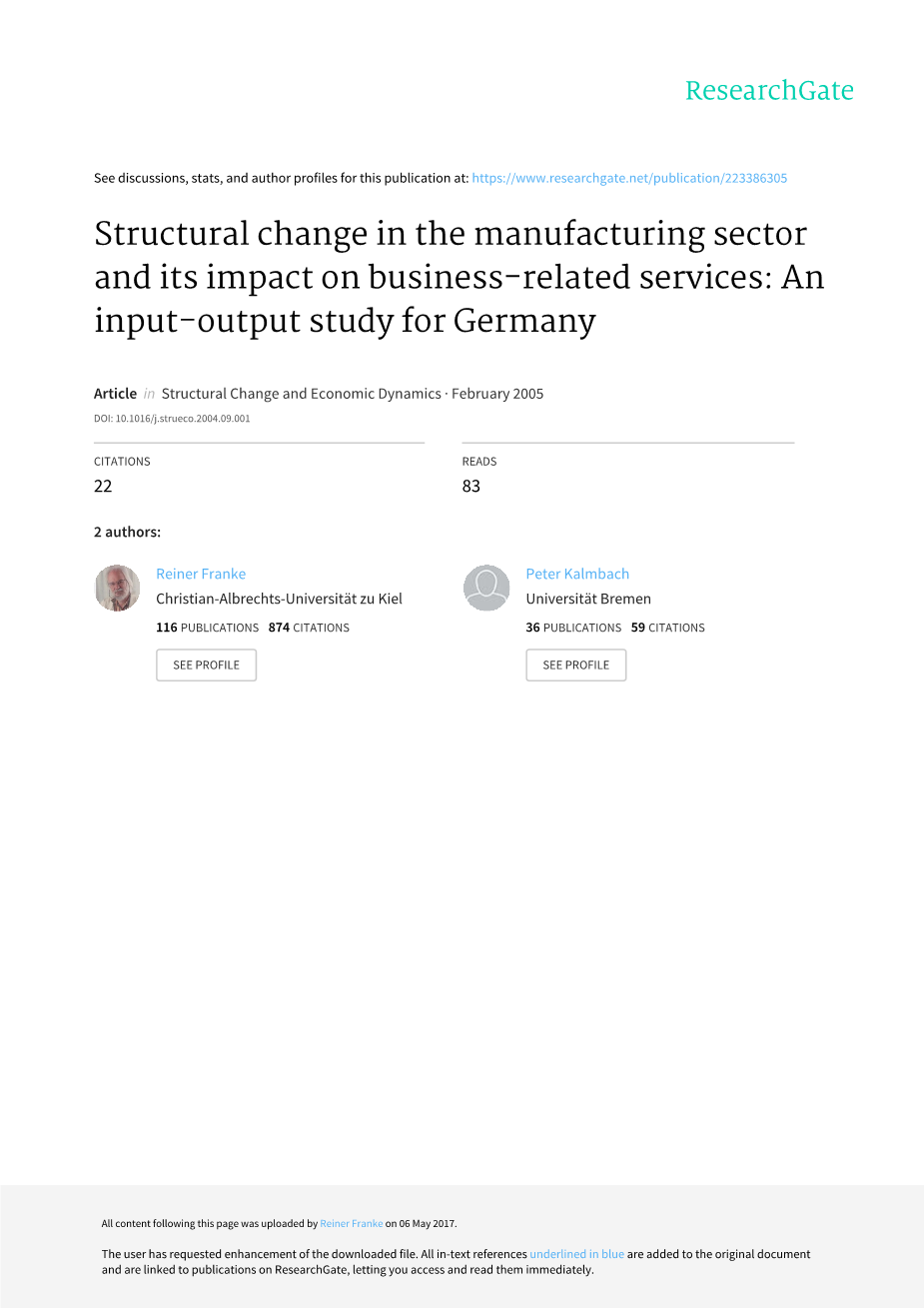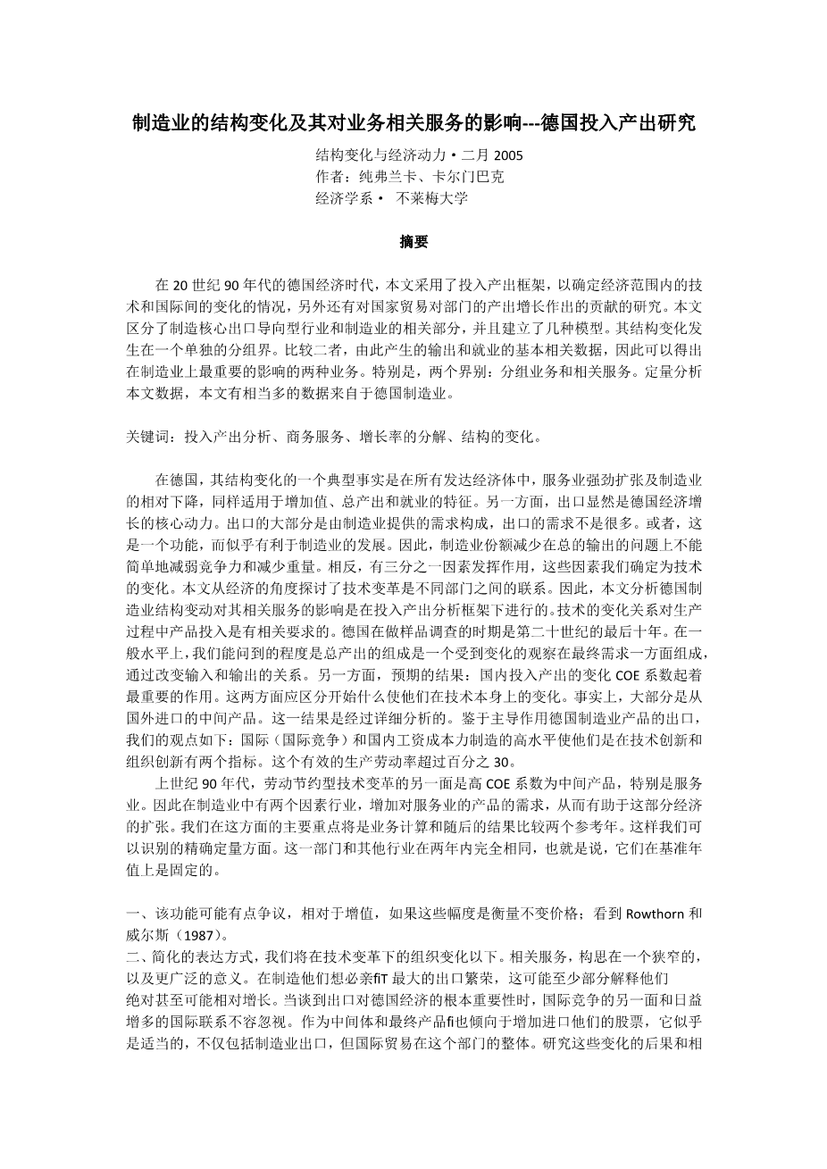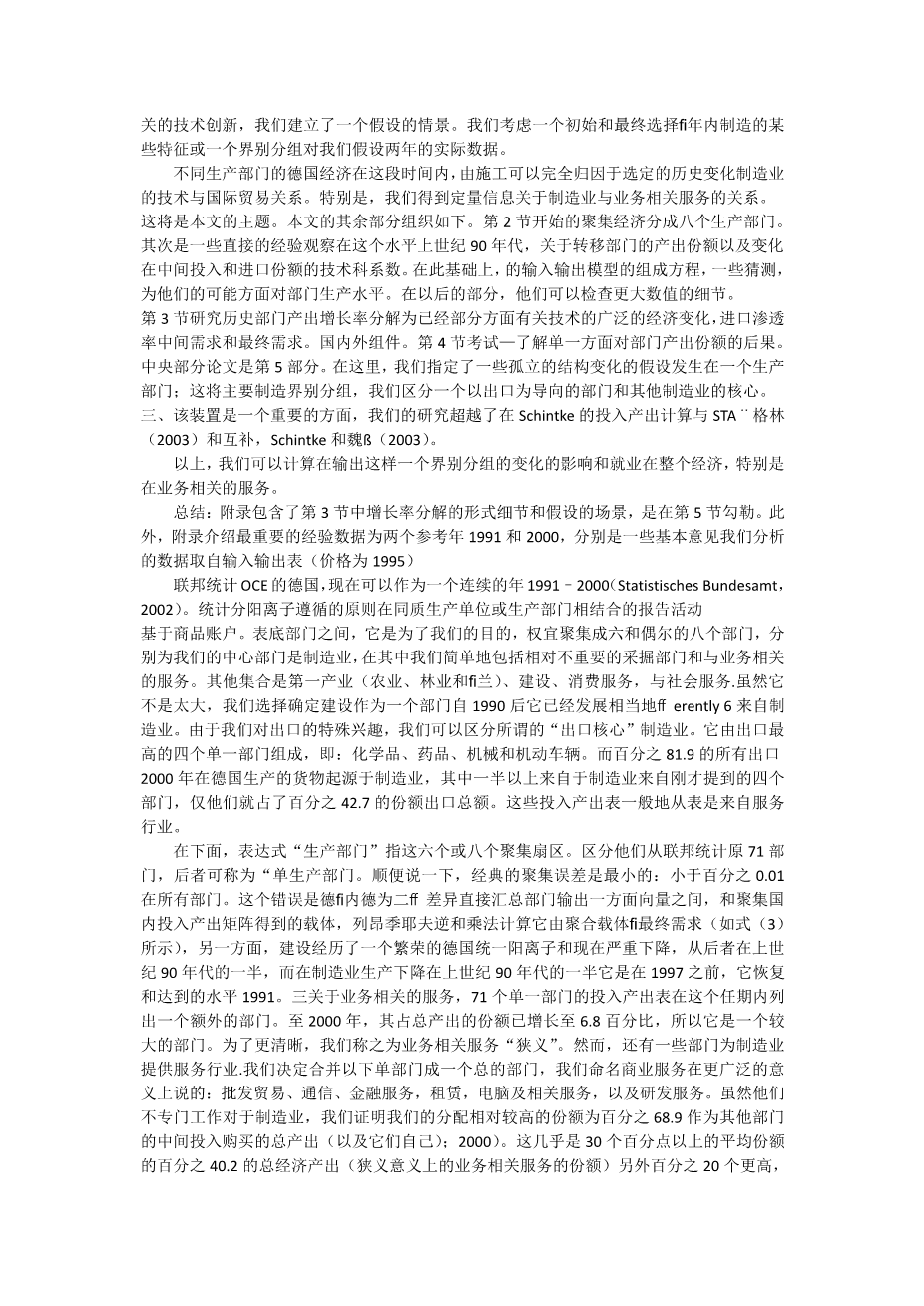 制造业的结构变化及其对业务相关服务的影响--德国投入产出研究外文翻译资料