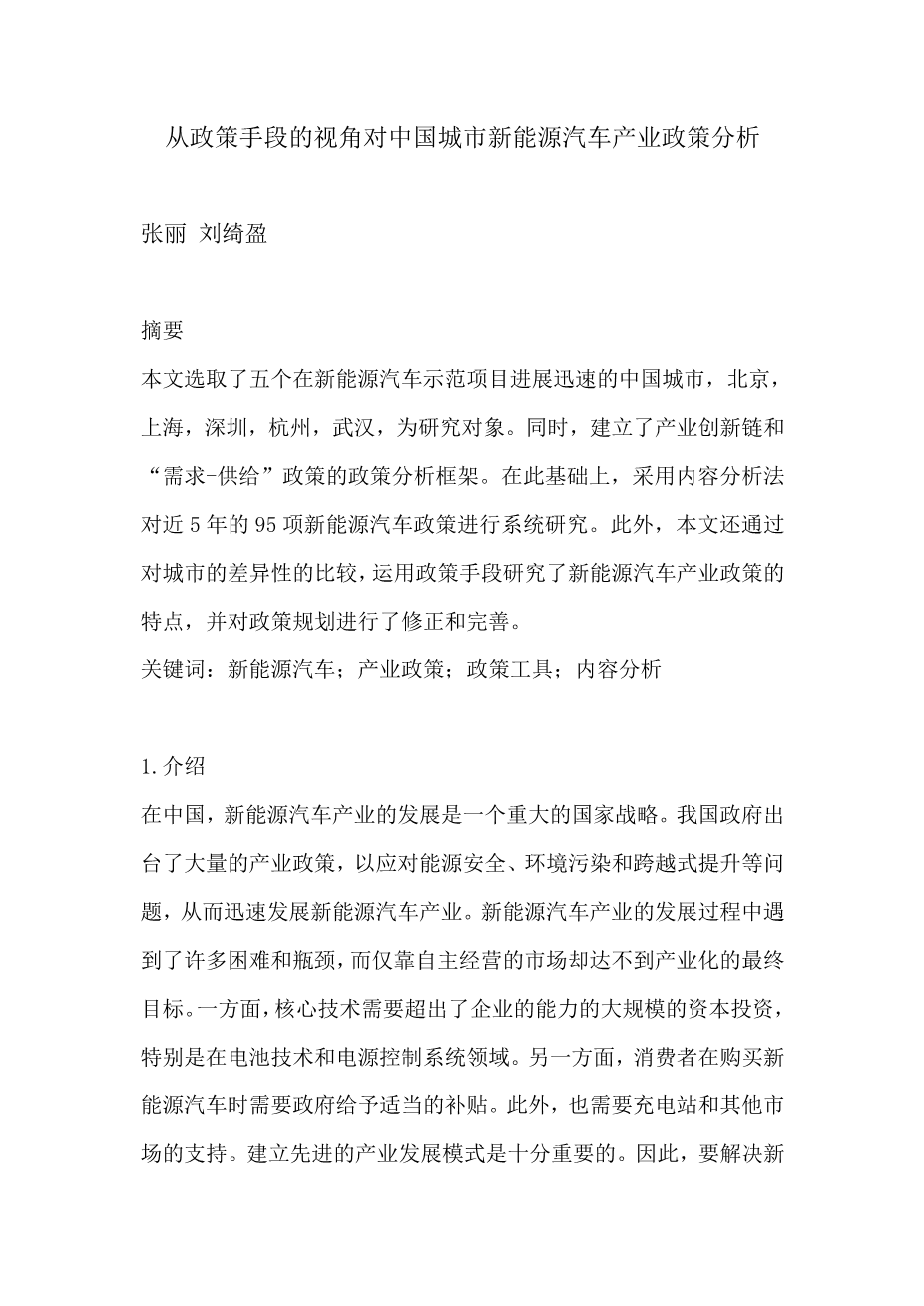 从政策手段的视角对中国城市新能源汽车产业政策分析外文翻译资料