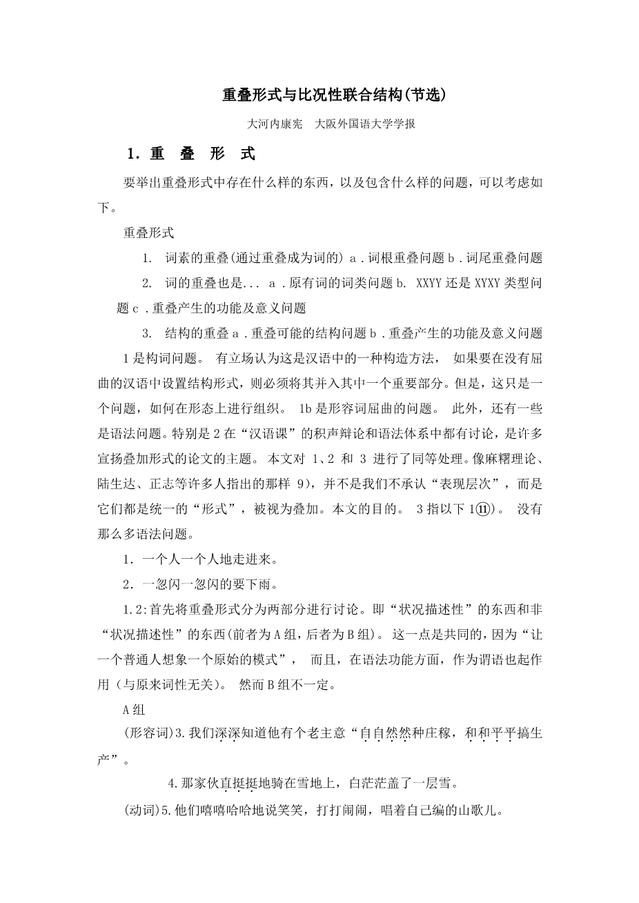 重叠形式与比况性联合结构(节选)外文翻译资料
