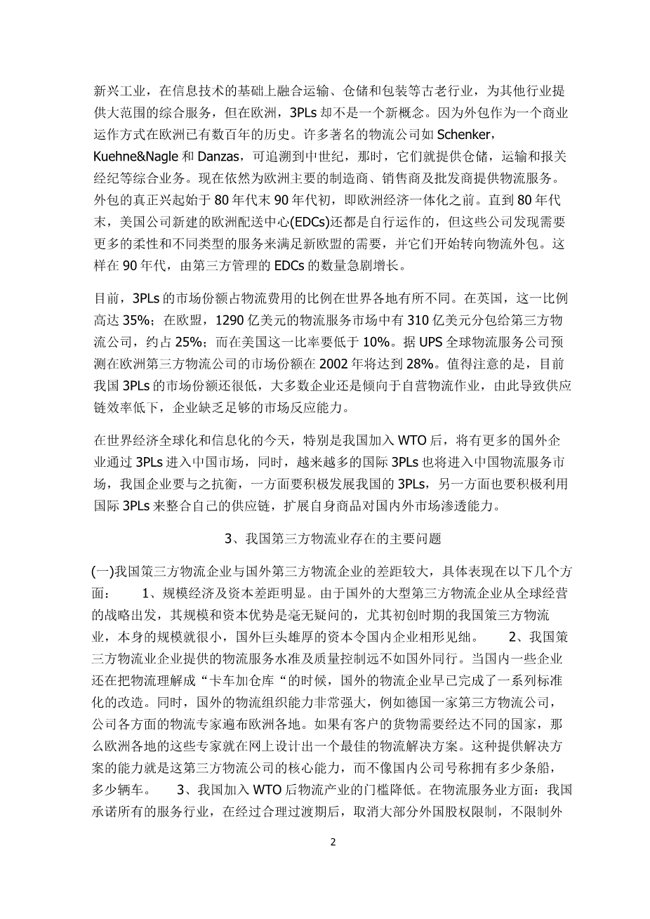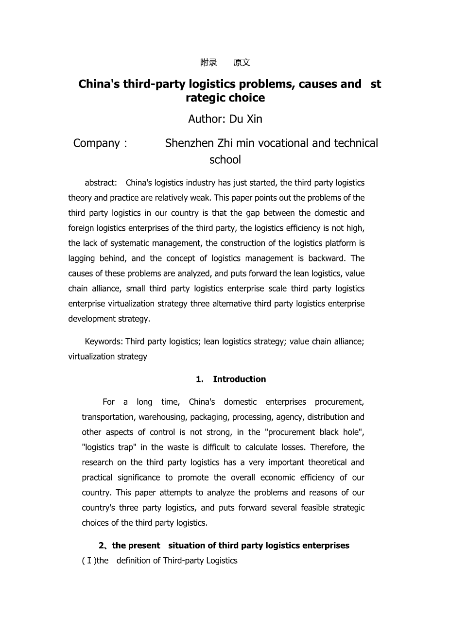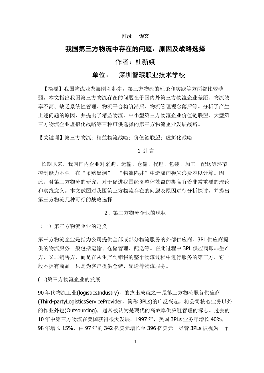我国第三方物流中存在的问题、原因及战略选择外文翻译资料