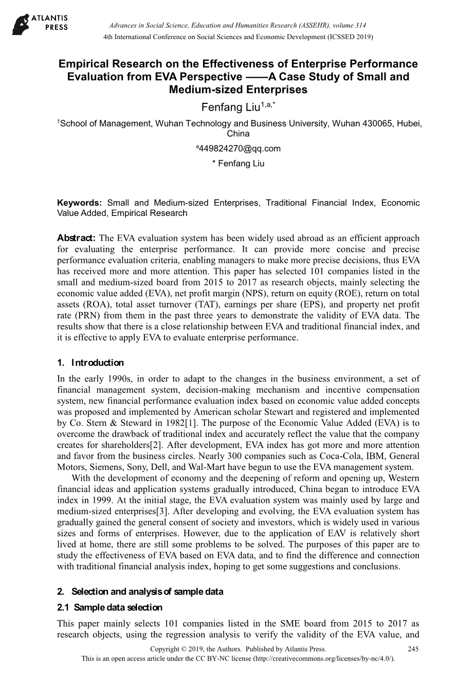 EVA视角的企业绩效评估有效性实证研究-以中小企业为例外文翻译资料