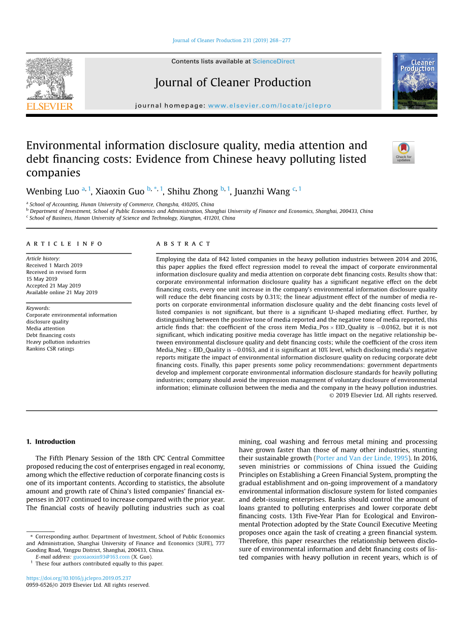 环境信息披露质量、媒体关注和债务融资成本:中国重污染上市公司的证据外文翻译资料