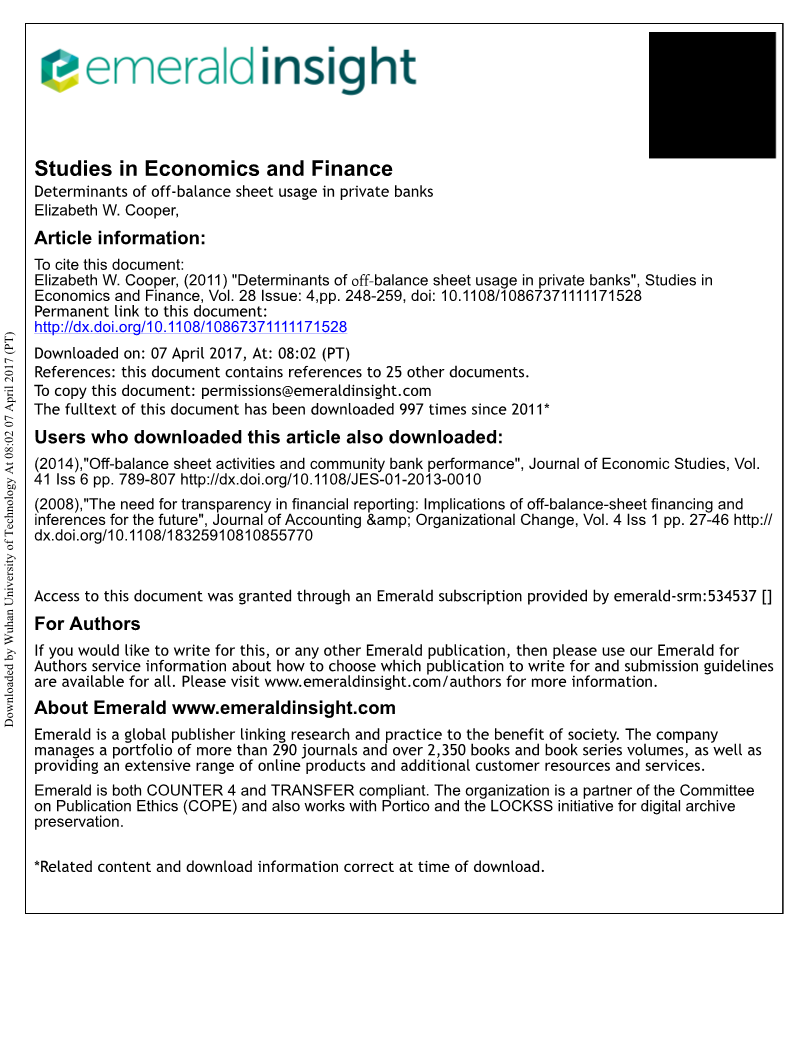 原创性/价值:由于目前的金融危机,对OBS使用的研究非常重要。在这里,本文着眼于从事OBS活动的小型私营商业银行。这种现象还没有得到很好的研究或理解。