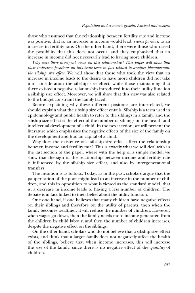 直觉如下:今天,和过去一样,学者们认为贫困人口的贫困化可能会导致儿童数量的增加,这与被视为标准模式的情况相反,即减少收入导致孩子数量减少。事实上,辩论与他们对效用函数的看法有关。