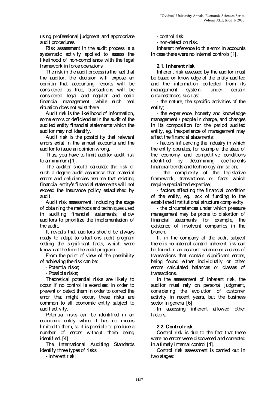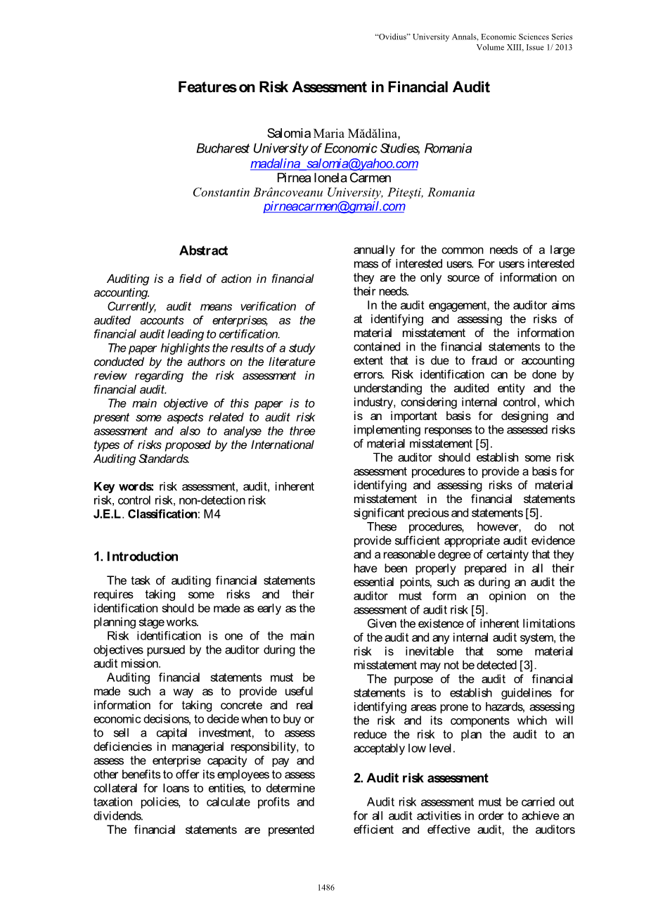 [2] Genete, L.D., “Audit risk assessment in financial accounting, quantitative methods and qualitative methods”, Annals of the “Alexandru Ioan Cuza” University, Iasi, Tomul LII/LIII Economic Sciences, pp 59-64, 2005/2006.