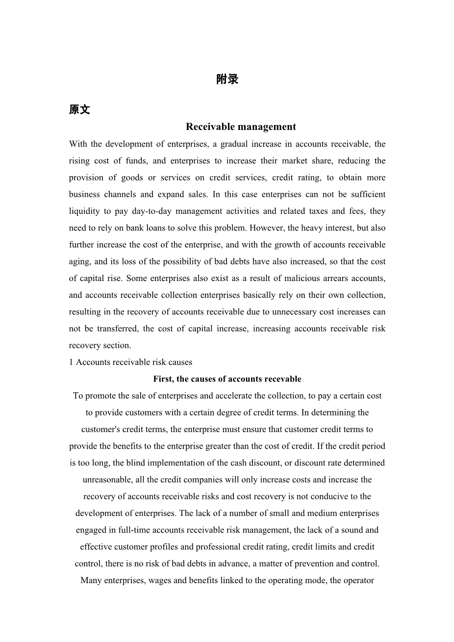 随着企业的发展,应收账款不断增加,资金成本也在上升,企业增加市场份额,减少提供商品或服务的信贷服务、信用评级,来得到更多的业务渠道,扩大销售。在这种情况下,企业没有足够的流动资金来支付日常管理活动中的相关税收和收费,他们需要靠银行贷款来解决这个问题。然而,利息太重,也进一步增加了企业的成本,并与应收账款的增长,应收账款的老化,以及其损失的坏账的可能性也有所增加,使资金成本上升。一些企业还存在恶意拖欠账款的行为,应收账款的收回本来就是要靠企业自己收回,导致不必要的费用增加,因为应收账款不能转让,增加了应收账款坏账风险。