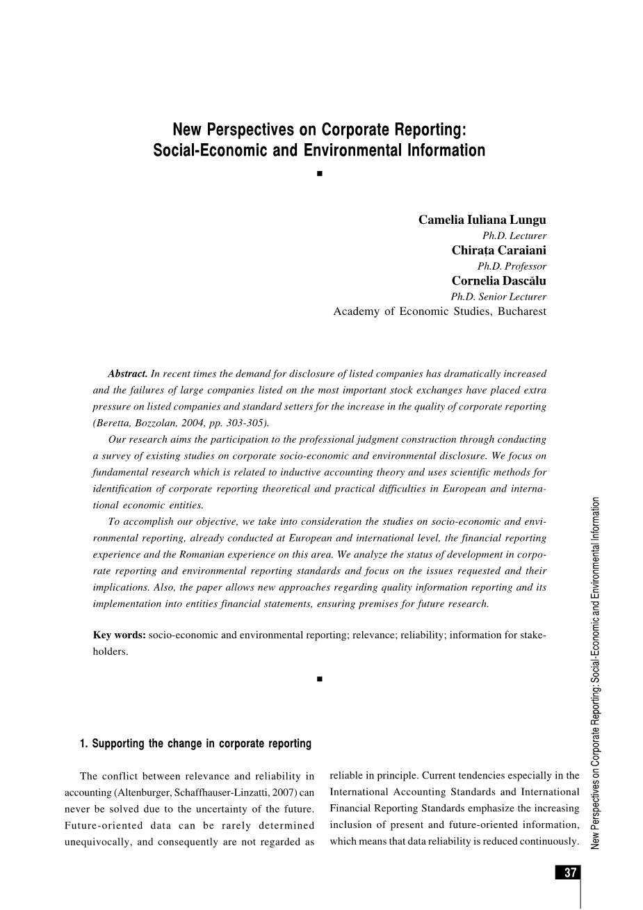 摘要:近来,上市公司披露的需求急剧增加,最重要证券交易所上市的大公司的失败给上市公司和标准制定者带来了额外的压力,以提高公司报告质量(Beretta,Bozzolan,2004,pp.303-305.)。我们的研究旨在通过对现有企业社会经济和环境披露研究进行调查,参与专业判断建设。我们专注于与归纳会计理论有关的基础研究,运用科学的方法来识别企业在欧洲和国际经济实体中的理论与实践困难。为了实现我们的目标,我们考虑到已经在欧洲和国际一级进行的关于社会经济和环境报告的研究,财务报告经验和罗马尼亚在这方面的经验。我们分析企业报告和环境报告标准的发展现状,并着重于所要求的问题及其影响。此外,本文还提供了关于质量信息报告和实施财务报表的新方法,确保了未来研究的前提。