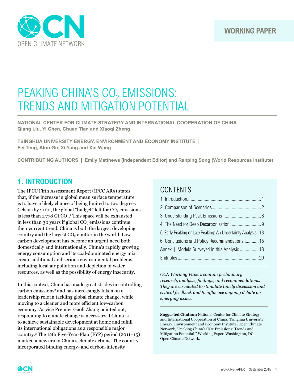 中国二氧化碳排放峰值: 趋势和减排压力外文翻译资料