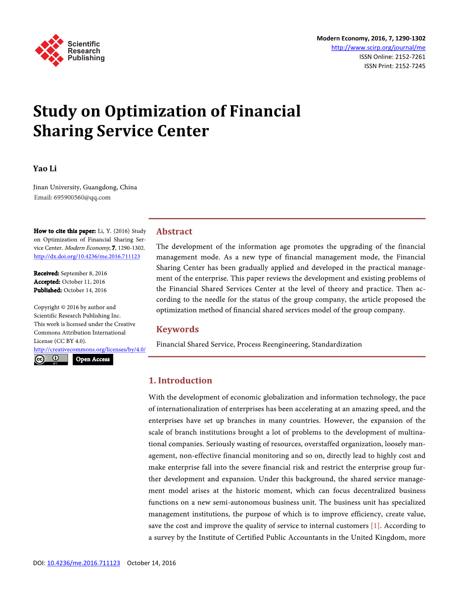 关于财务共享服务中心的价值和功能尚未达成共识,大多数研究侧重于提高效率,降低成本,提高服务质量等。关于财务共享中心模型建设的研究,Zhang等(2008)[12]运用案例研究方法研究了中兴通讯财务共享服务中心的应用,指出财务共享模式建设的关键因素是财务系统的标准化,财务人员的集中化,财务管理的流程化。Duan(2009)[13]还利用案例研究方法研究了银行的财务共享服务中心建设。财务共享服务中心除完成业务流程分析,项目规划和系统开发优先级等关键工作外,还完成财务监管的组织结构,财务管理系统,财务知识和制度培训等配套工作,对审批流程的优化也起到了非常重要的作用。Zhou Changzhi(2010)[14]强调流程标准化对财务共享服务中心的高效运作至关重要,是信息集中化的前提。但是,如何全面实施标准化过程是管理层面临的重要课题。一般来说,由于业务发展不平衡和操作习惯的差异,分支机构实施标准化操作程序并不理想。因此,财务共享服务中心要想达到预期的效果,流程必须实现高度标准化。Huang Qinghua and Du Zhou(2014)[15]提出企业建立财务共享服务中心的关键策略是遵循四个要素:有效的管理创新和思维方式的转变,统一的标准化信息平台,规范的金融体系和操作流程,内部控制和财务预警系统建设。