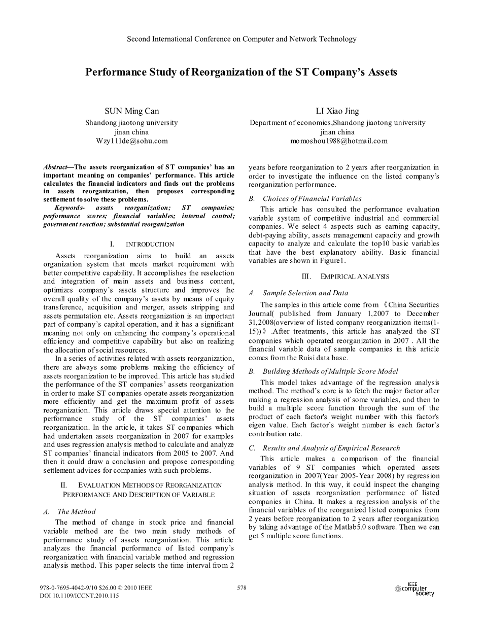 在与资产重组相关的一系列活动中,总是存在一些问题,使资产重组的效率得到提高。本文研究了ST公司资产重组的业绩,为使ST公司更有效地运作资产重组,获得资产重组的最大利润。本文特别侧重ST公司资产重组绩效的考核。在本文中,以2007年进行了资产重组的ST公司为例。并采用回归分析方法对2005年至2007年的ST公司财务指标进行了计算和分析,得出结论,并提出了相应的解决方案。