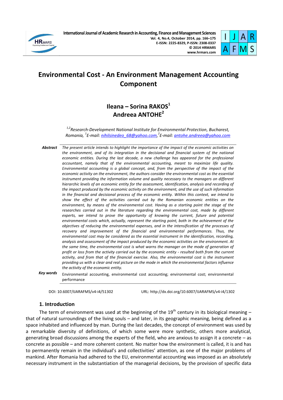 环境成本——环境管理会计组成部分外文翻译资料