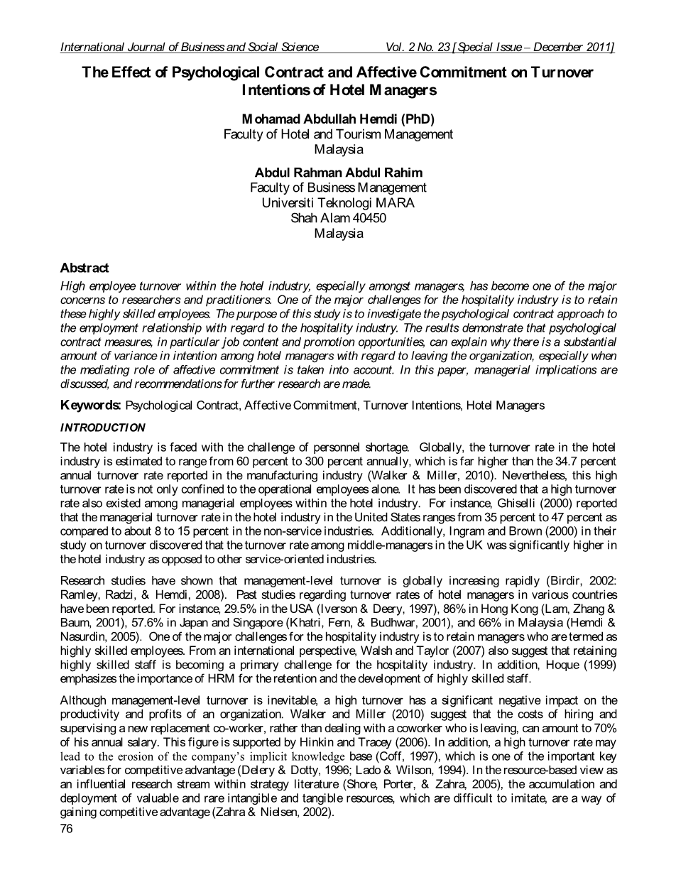 心理契约和情感承诺对酒店管理者离职倾向的影响外文翻译资料