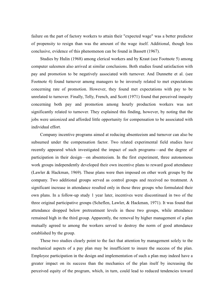 组织、工作和个人因素对员工离职和缺勤的影响外文翻译资料