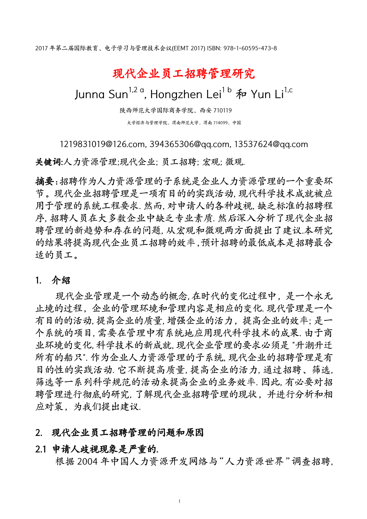 Keywords: Human resources management; modern enterprise; staff recruitment; macro; micro.