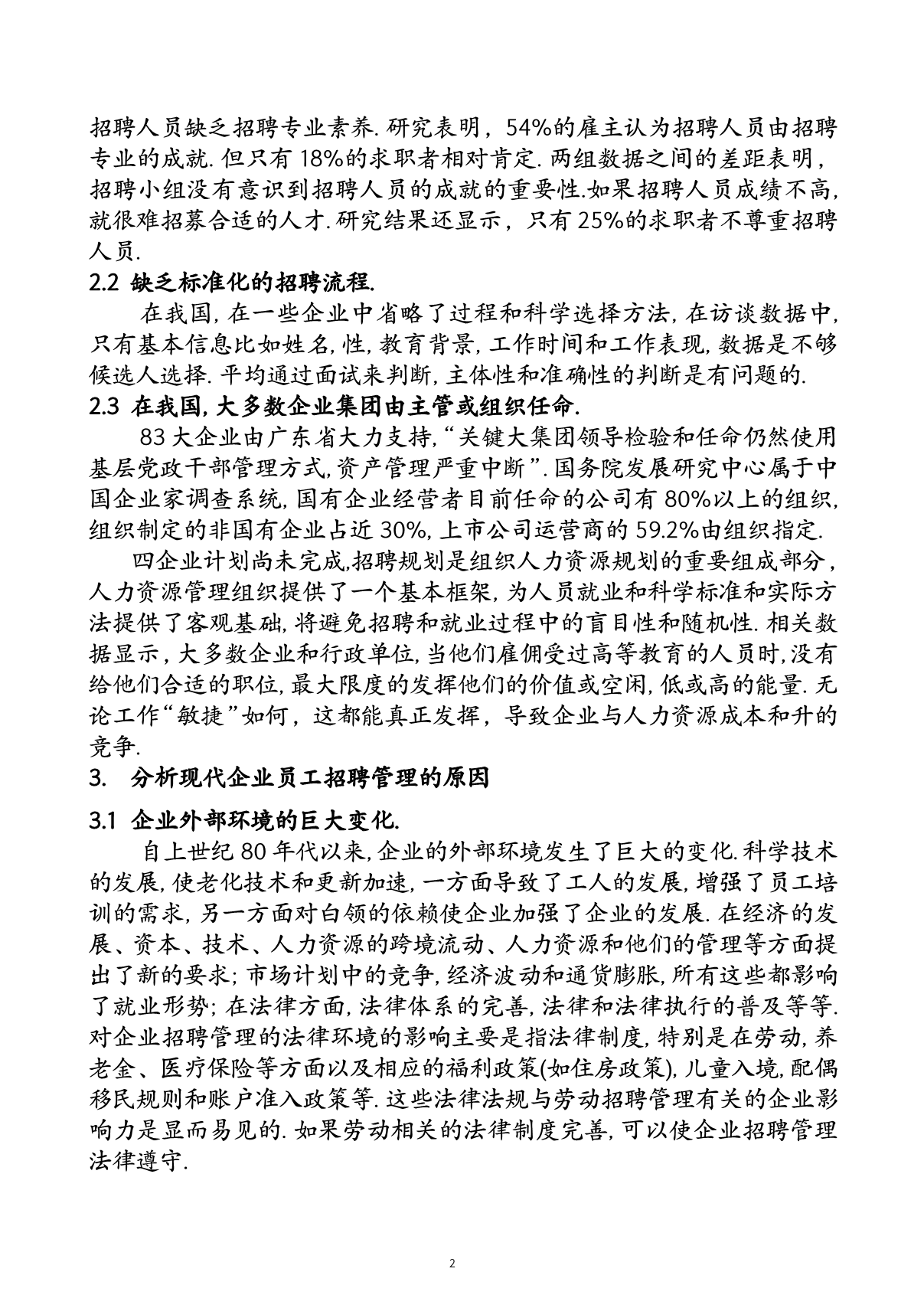 Abstract. Recruitment as the subsystem of the human resource management is an important link in enterprise human resources management. Recruitment management of modern enterprise is a purposeful practice activity, modern scientific and technological achievements is applied as a systems engineering requirement in the management. However, various discrimination to applicant, lack of standard recruitment procedures, the recruiters lack of professional quality in most businesses in the actual job. Then analyze the new trend of modern enterprise recruitment management and existing problems in-depth in this paper, and put forward suggestions from two aspects: macroscopic and microscopic countermeasures. The results of this study will improve the efficiency of the modern enterprise staff recruitment, expect with the minimum cost of recruitment to recruit the most appropriate staff.