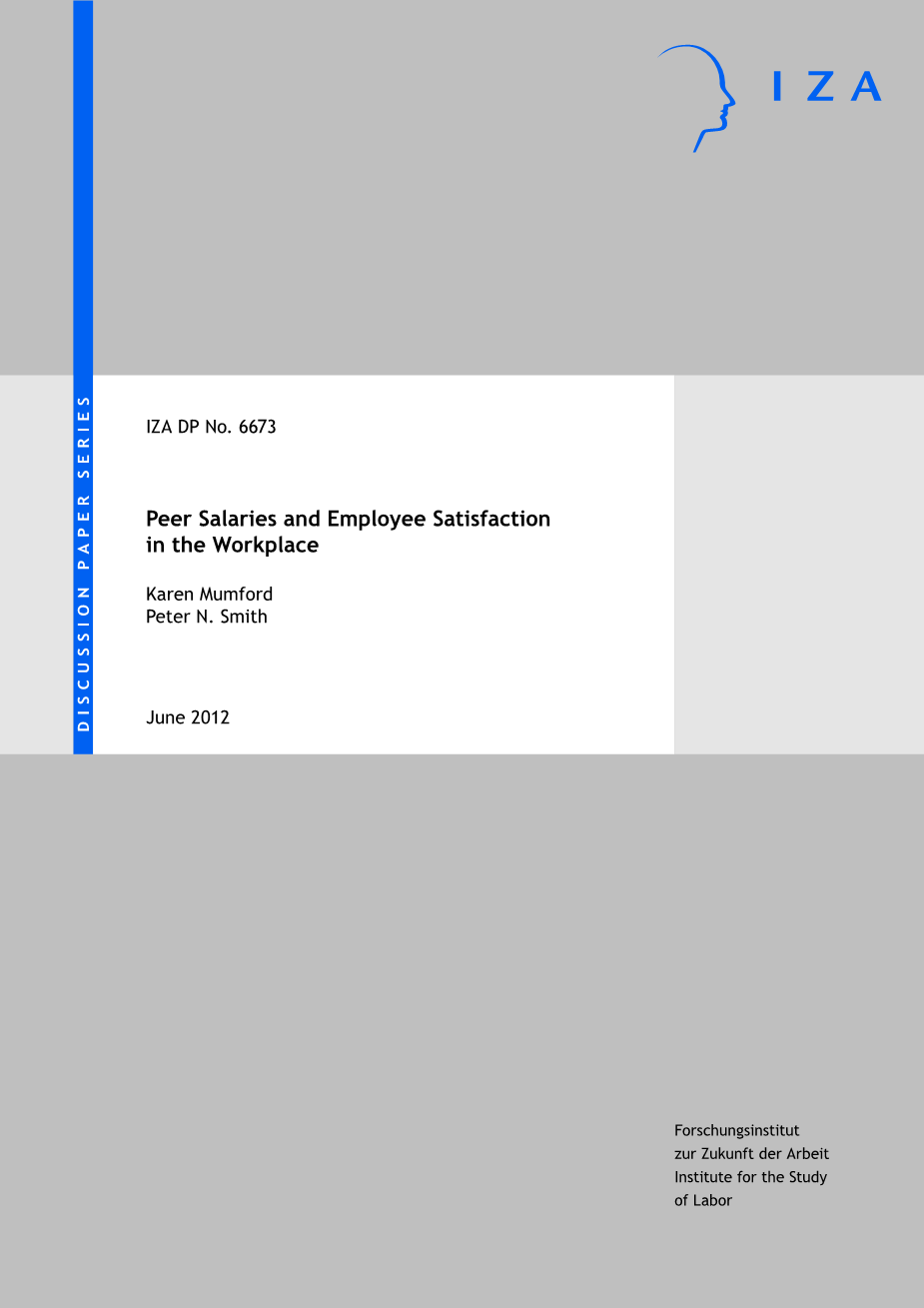 无论是男性还是女性,相对于其他员工,员工似乎都对自己的工资水平了解的比较清晰透彻。(Hampton和Heywood,1993年)。但是这并不是意味着他们会对自己的工资和所有其他雇员的工资之间的差距展现同样的关心。在很长的时间以来,人们都认识到,工人们习惯将自己的工资与他们认为与自己相似的其他工人进行比较(密尔,1867:236;菲尔普斯·布朗,1979:134)。最近这段时间,Card等人(2012年)发现,员工对与自己相关联的工资的反应可能不是显而易见的。工人更可能会关心自己的工资与其进行对照群体之间的工资的绝对性的差距(菲尔普斯·布朗,1979:141)。或者他们可能会将自己工资的增加数额和比较群体平均工资的减少数额进行区分与比较(Easterlin,1995:36-37)。此外,在文献中还没有明确地对员工的行为反应进行确定。Card等人(2012年)提出了两种方法之间的比较方法,一种是相对效用模型,即如果员工的工资低于其他工人,员工可能会产生不满意的情绪(另见Zizzo和Oswald,2001年),另一种是建立了工资未来发展信号的同事工资模型(另见Clark等人,2009年)。即员工对同事工资的反应很可能是不相同的,这取决于他们的工资是否高于或低于他们的比较群体(Duesenberry,1949年;Clark等人,2009年;Ferrer-I-Carbonell,2005年)。