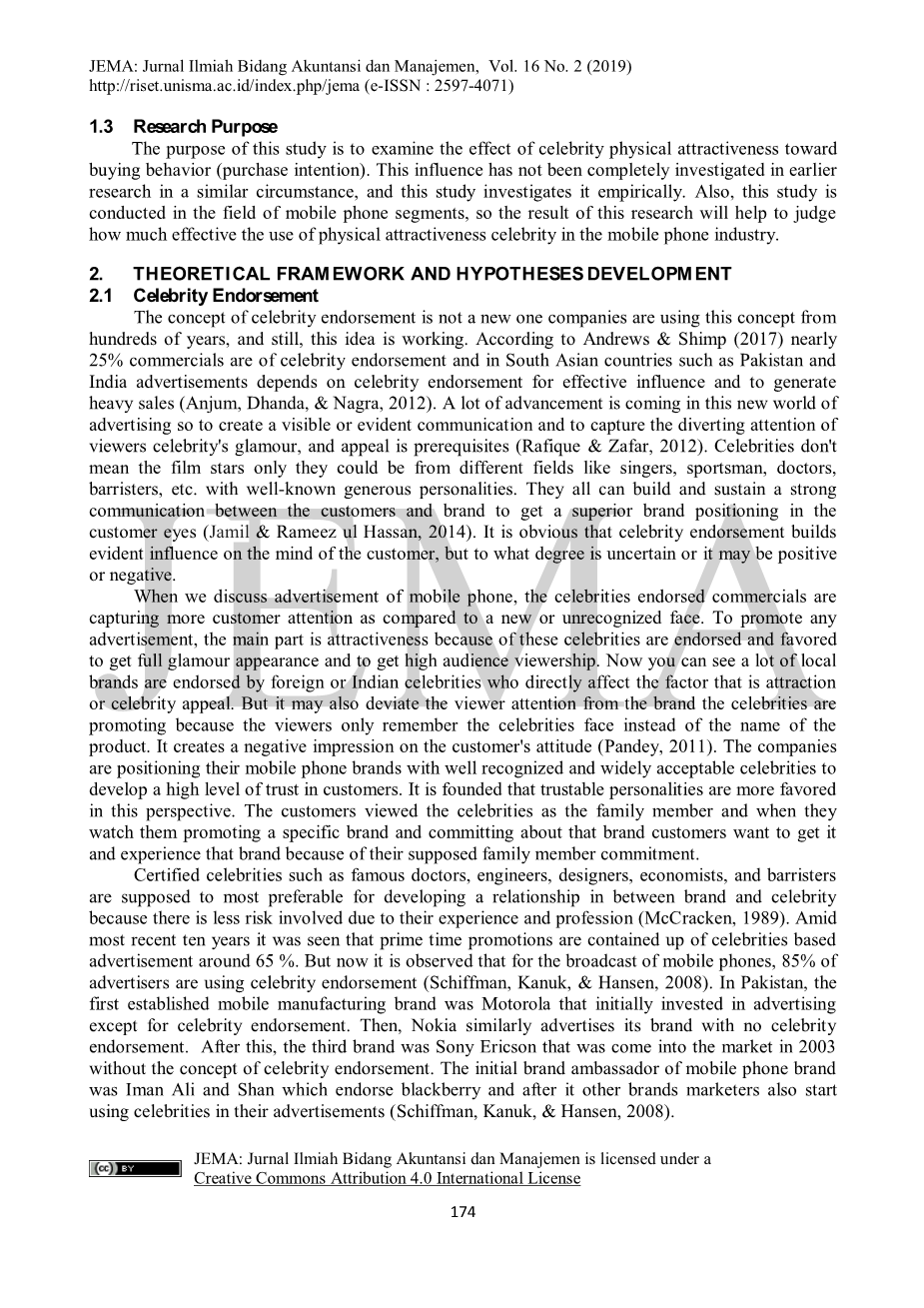 本研究的目的在于探讨名人外表吸引力对购买行为(购买意愿)的影响。在类似的情况下,这种影响在早期的研究中并没有被完全调查,而本研究是基于实证的。另外,本研究是在手机细分领域进行的,因此本研究的结果将有助于判断使用具有吸引力的名人代言会对手机行业产生多大影响。
