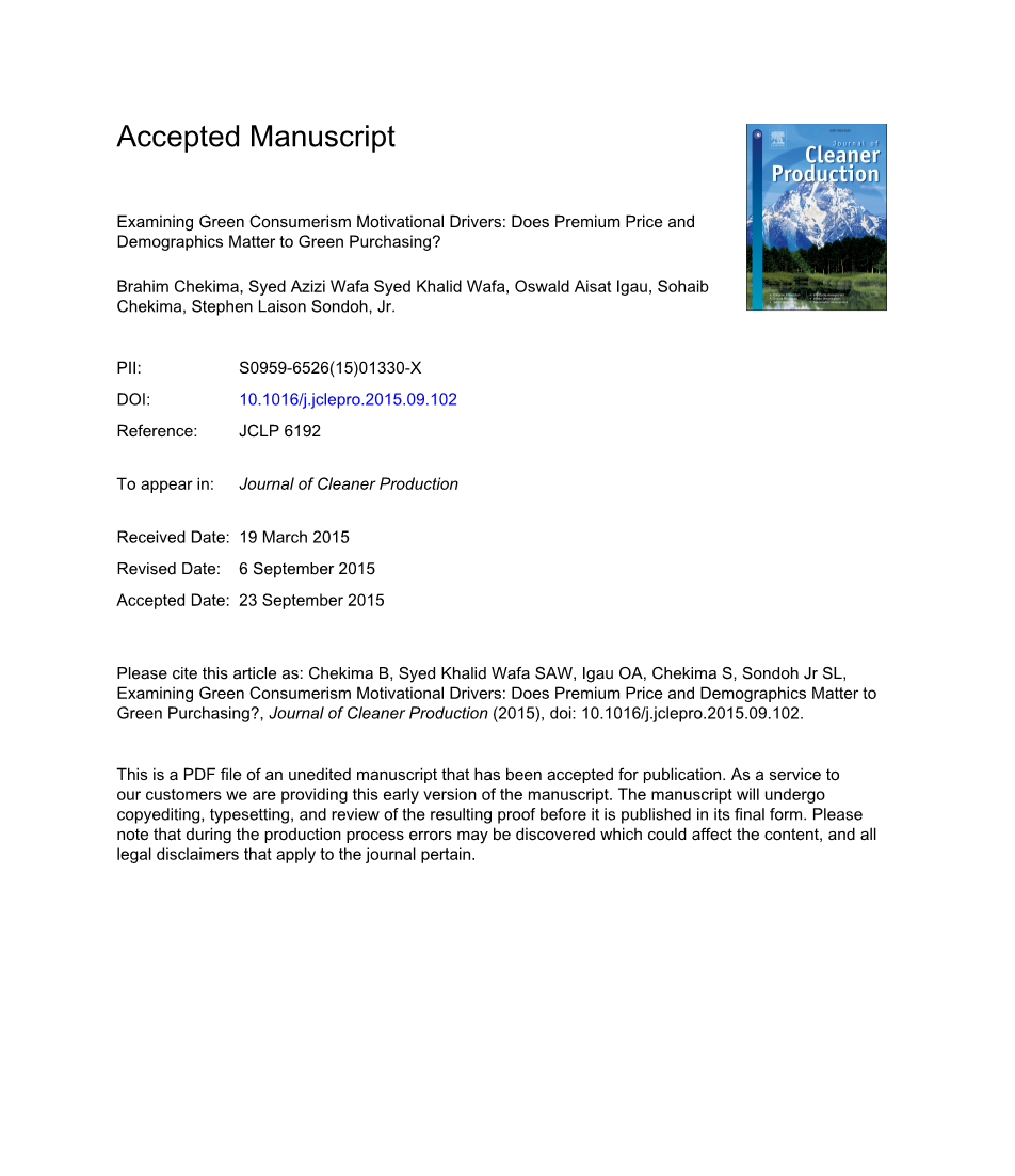 关于绿色消费主义驱动因素的调查:溢价和人口特征对绿色购买是否重要?