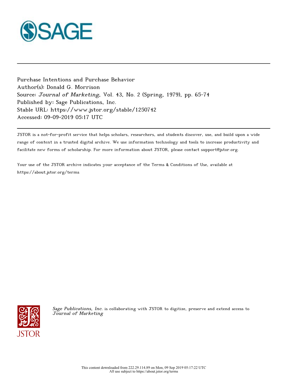 购买意图仍然是营销中的重要概念。公开的文献只包含很小一部分使用购买意图的实际研究。然而,文学的数量却很大。Axelrod(1968)分析了购买意 图以及用于预测实际购买行为的其他态度度量。史密斯(1965)提出了一个关于购买意图在评估汽车广告效果方面的可读性和趣味性的讨论。Silk and Urban(1978)将购买意向作为一种新产品模型的输入。Bass,Pessemier 和 Lehmann(1972)在他们著名的软饮料研究中使用购买意图。Sewall(1978)使用购买意向来细分提议的新产品(重新设计)。尽管大量使用了购买意向数据,但很少有人努力构建一个正式的数学模型,该模型建立了陈述的购买意向和实际购买行为之间的中间联系。本文试图建立这样一个模型,它将使购买意图成为一个更好理解和更有用的概念。