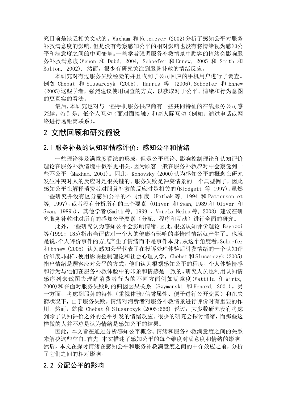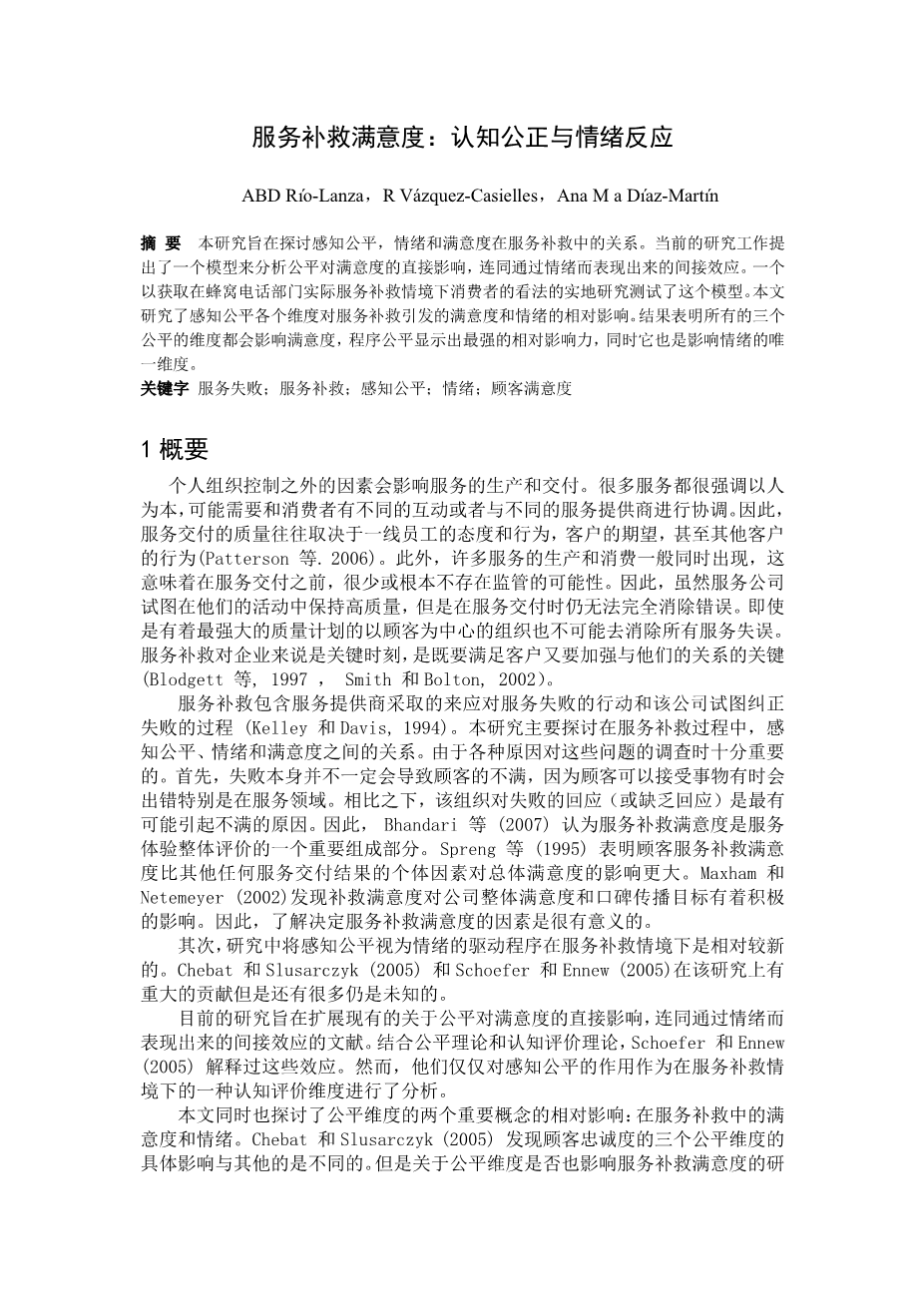 服务补救满意度:认知公正与情绪反应外文翻译资料