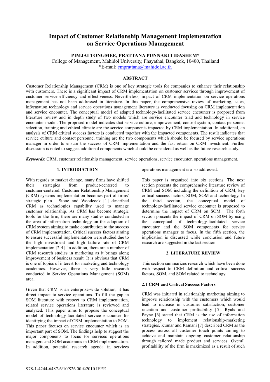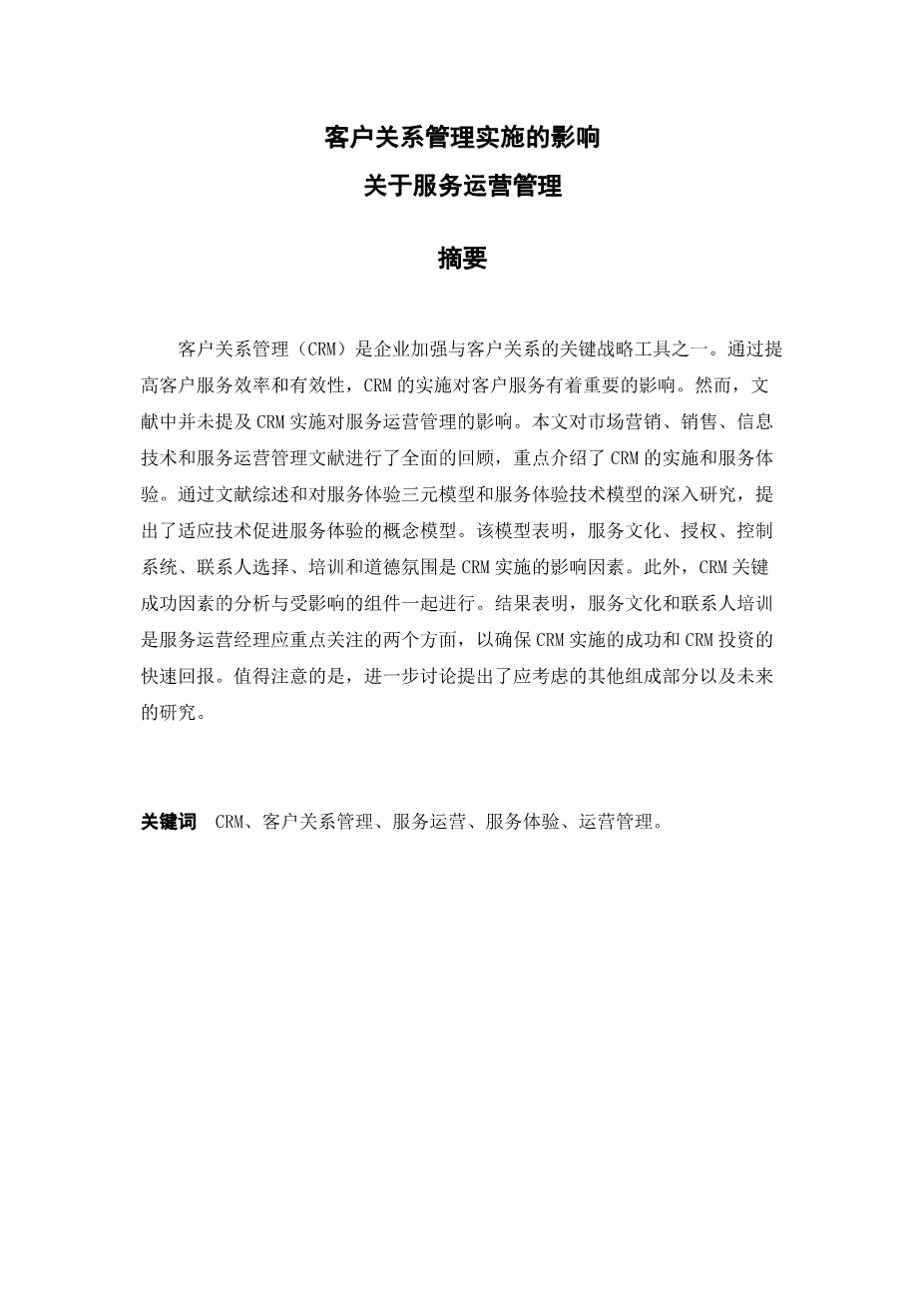 客户关系管理实施的影响关于服务运营管理外文翻译资料