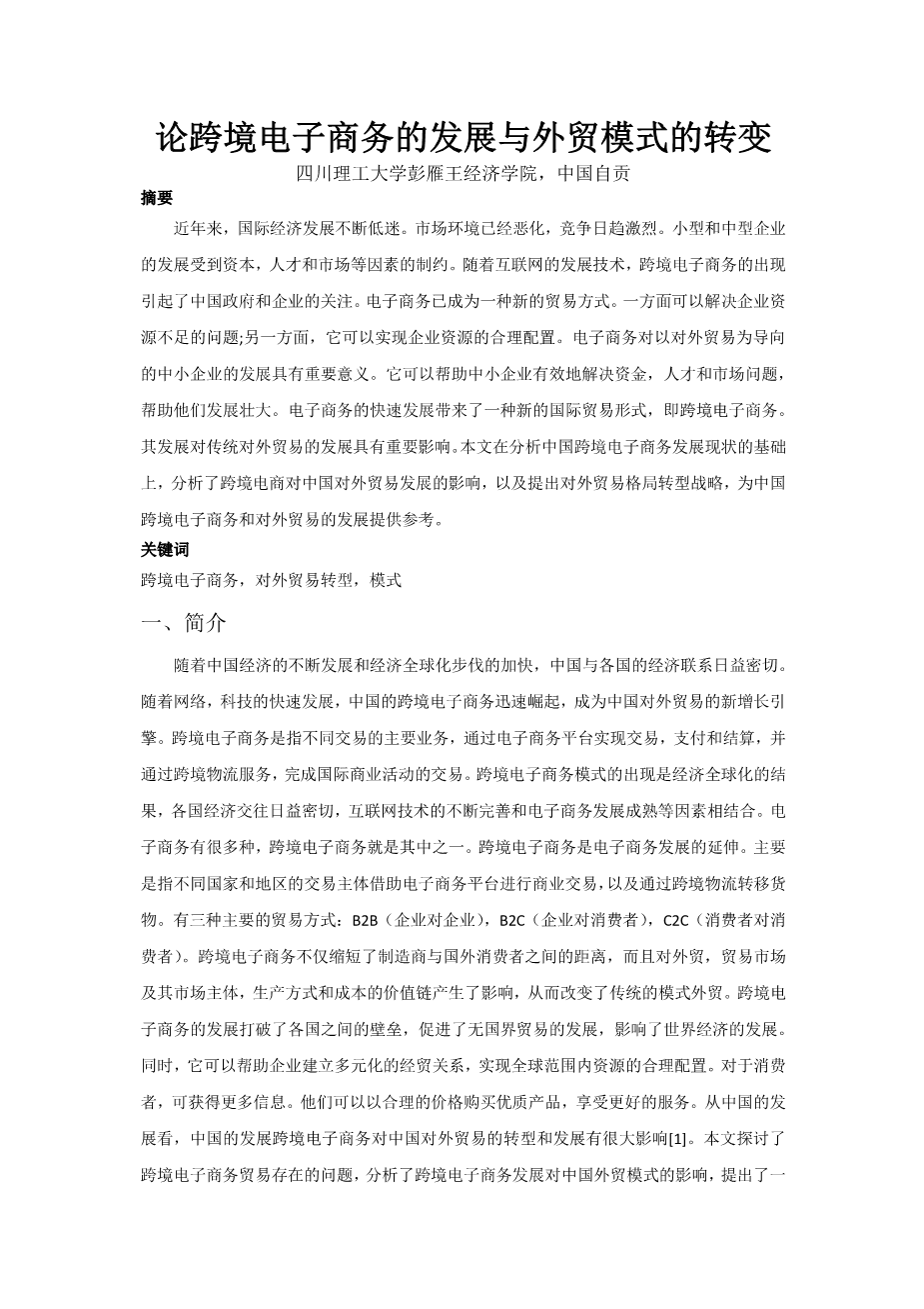 论跨境电子商务的发展与外贸模式的转变外文翻译资料
