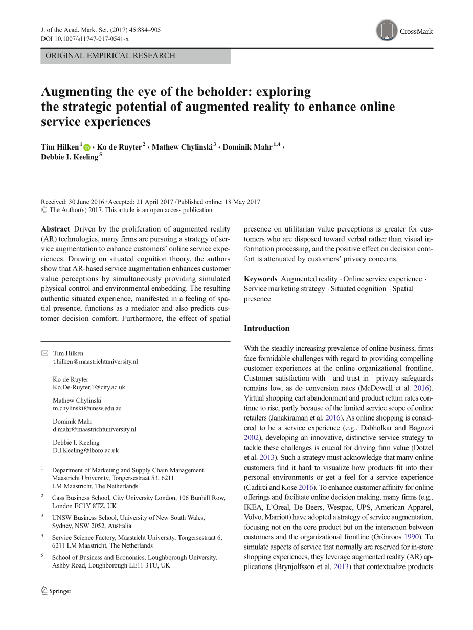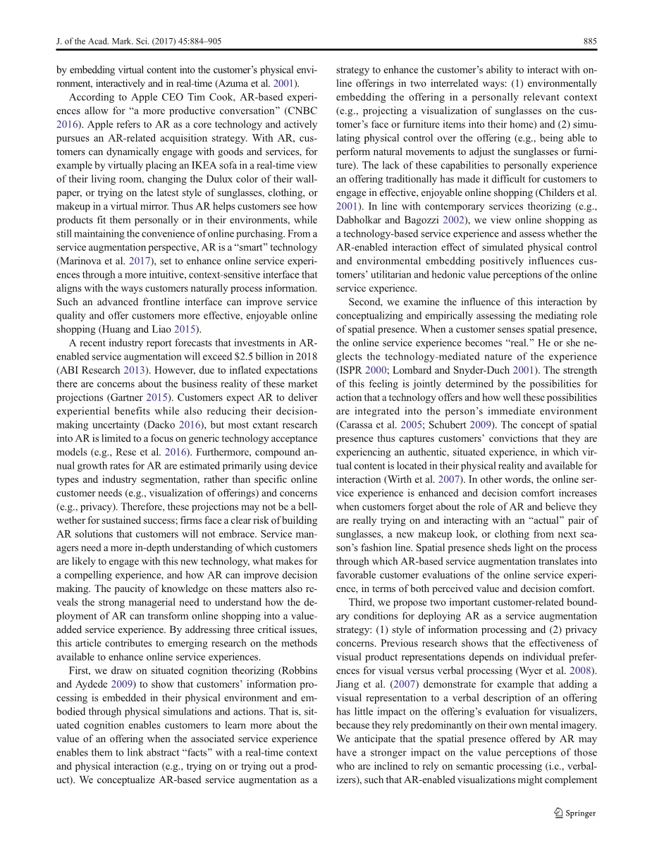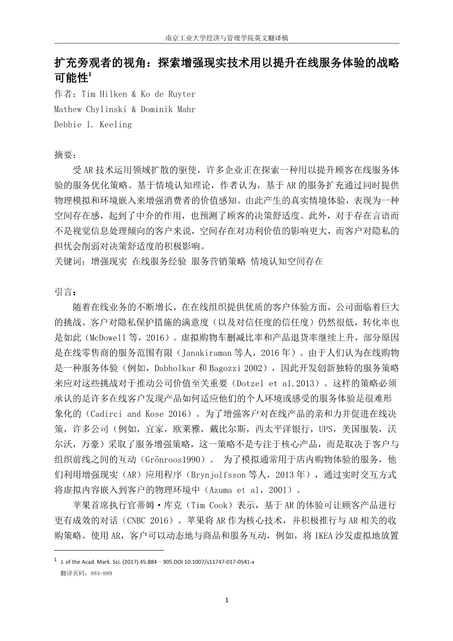 扩充旁观者的视角:探索增强现实技术用以提升在线服务体验的战略可能性'外文翻译资料
