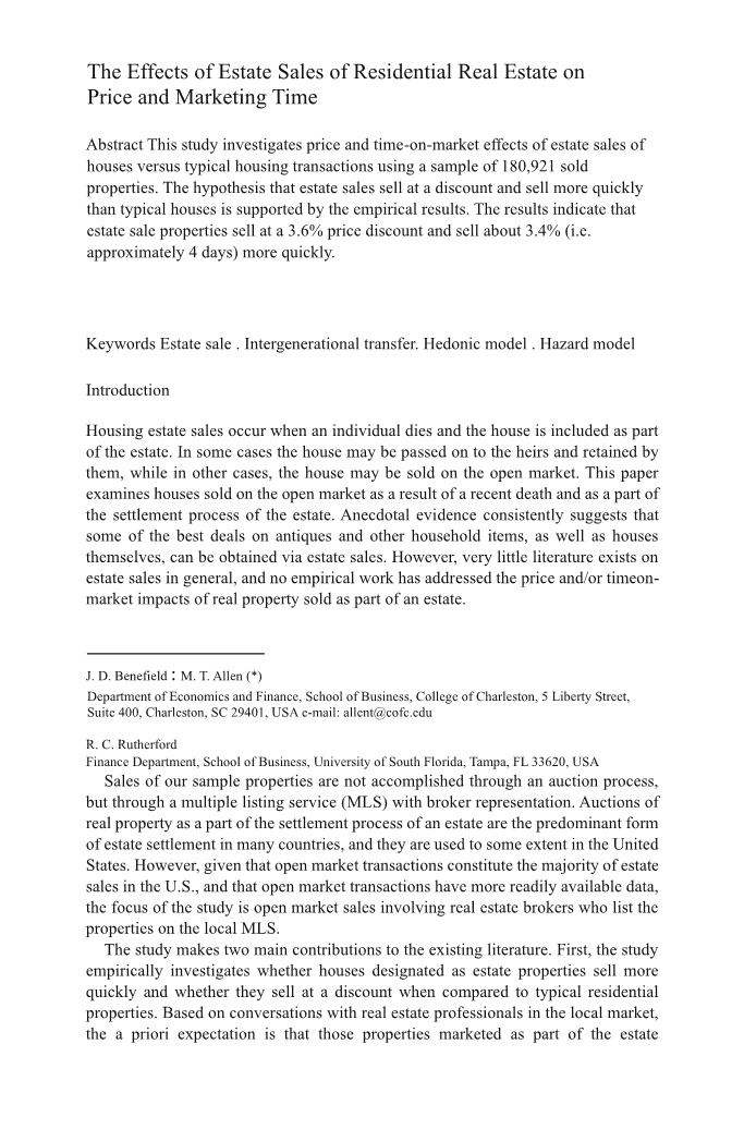 住宅房地产销售对价格和营销时间的影响外文翻译资料