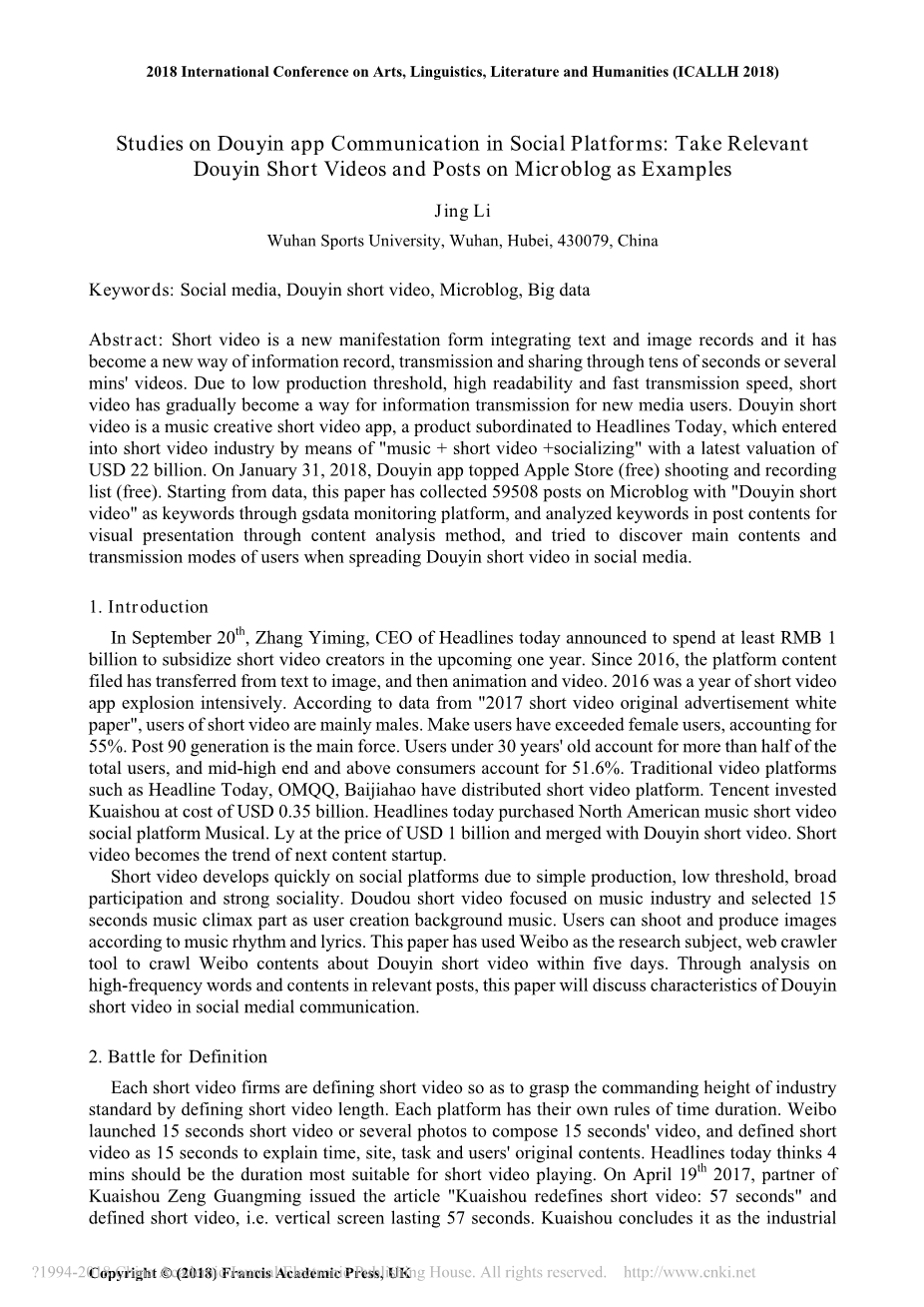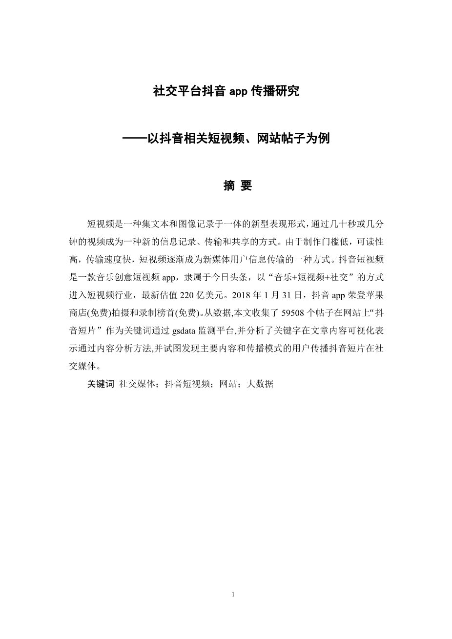 社交平台抖音 app 传播研究 --以抖音相关短视频、网站帖子为例外文翻译资料