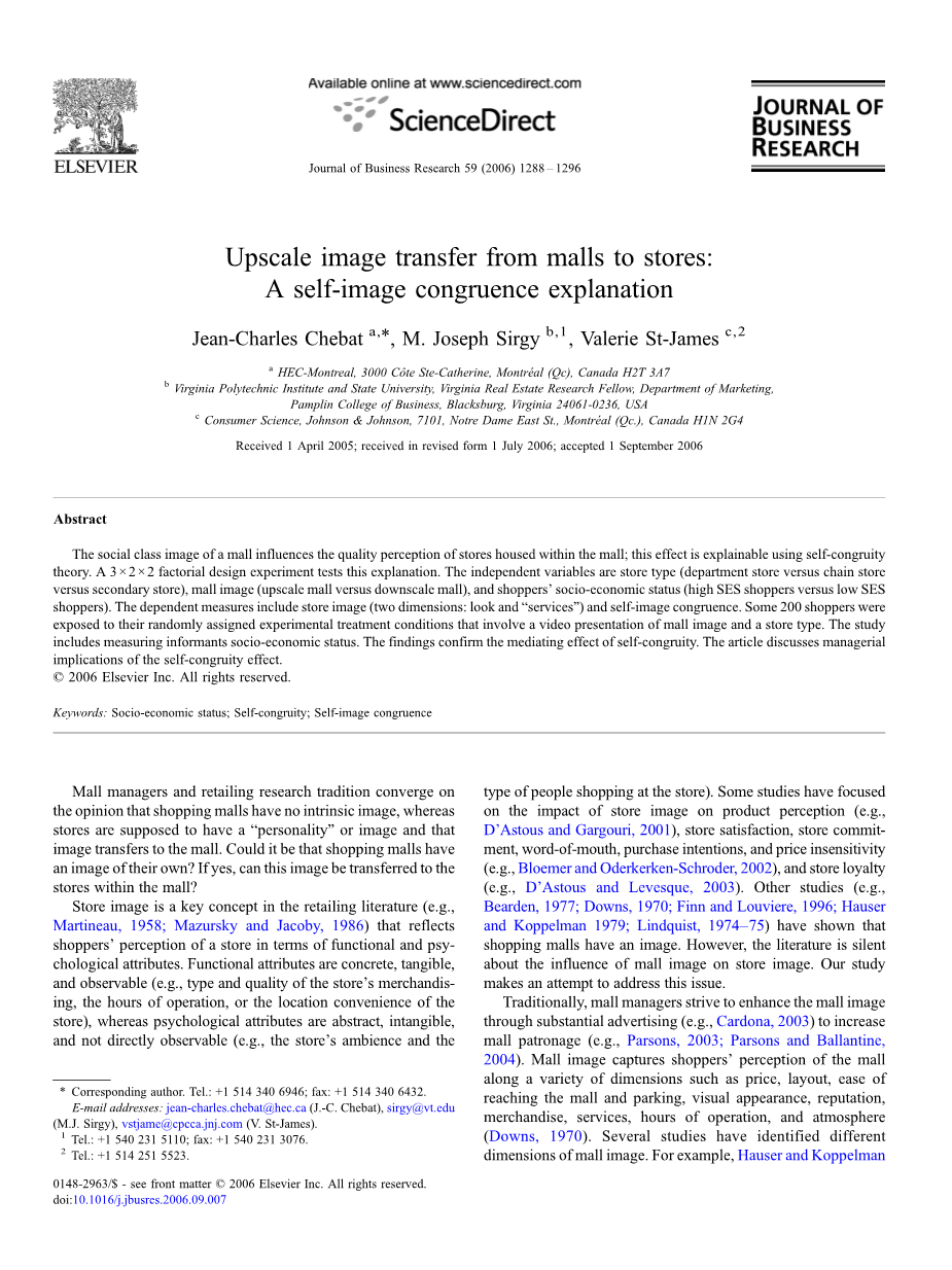 从商场到商店的高档形象转移:自我形象一致性的解释外文翻译资料