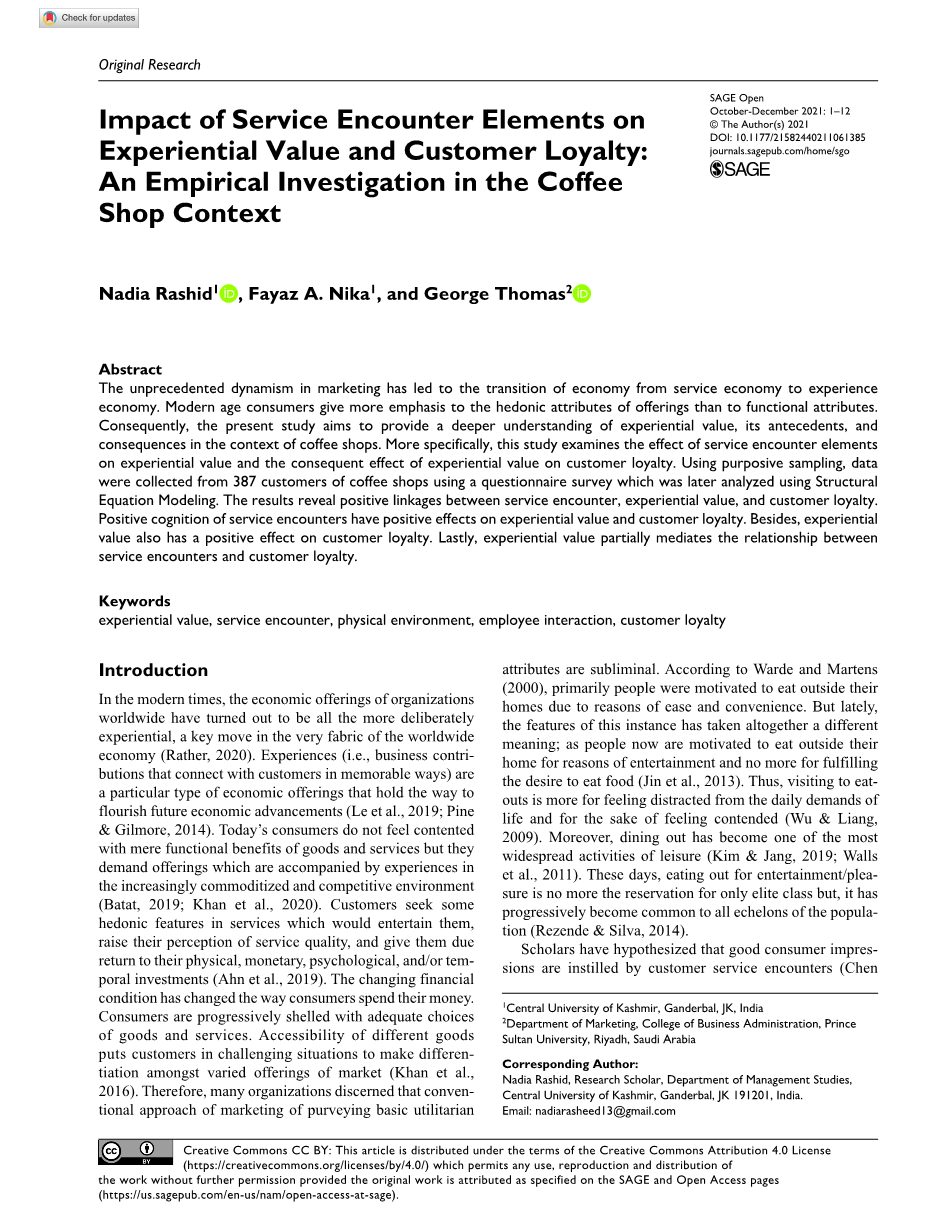 服务接触要素对体验价值和顾客忠诚的影响:咖啡店情境下的实证研究外文翻译资料
