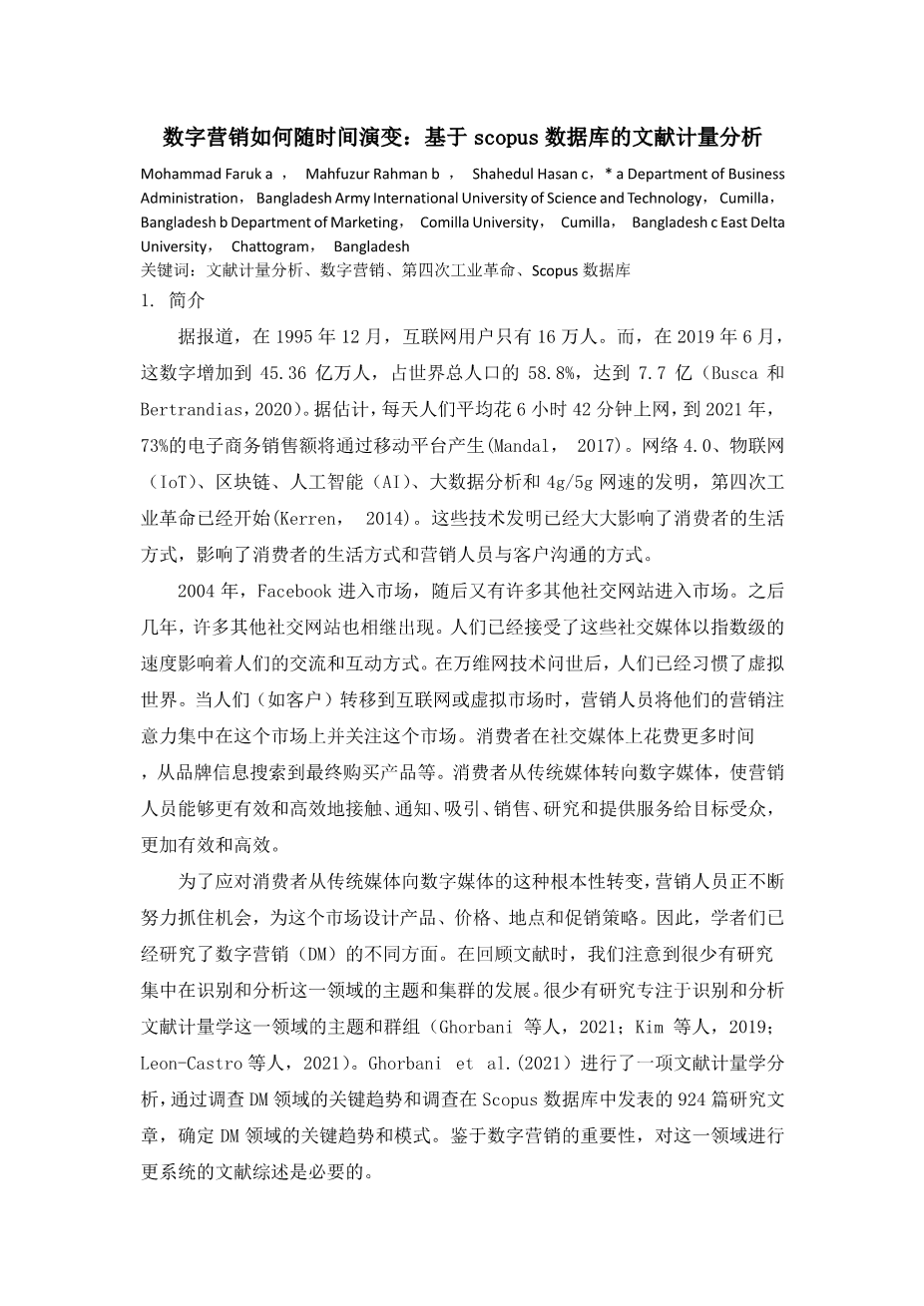 数字营销如何随时间演变:基于scopus数据库的文献计量分析外文翻译资料