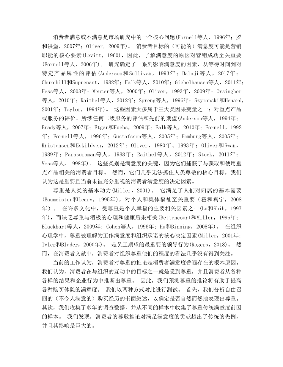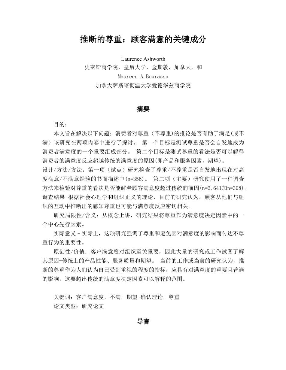 推断的尊重:顾客满意的关键成分外文翻译资料