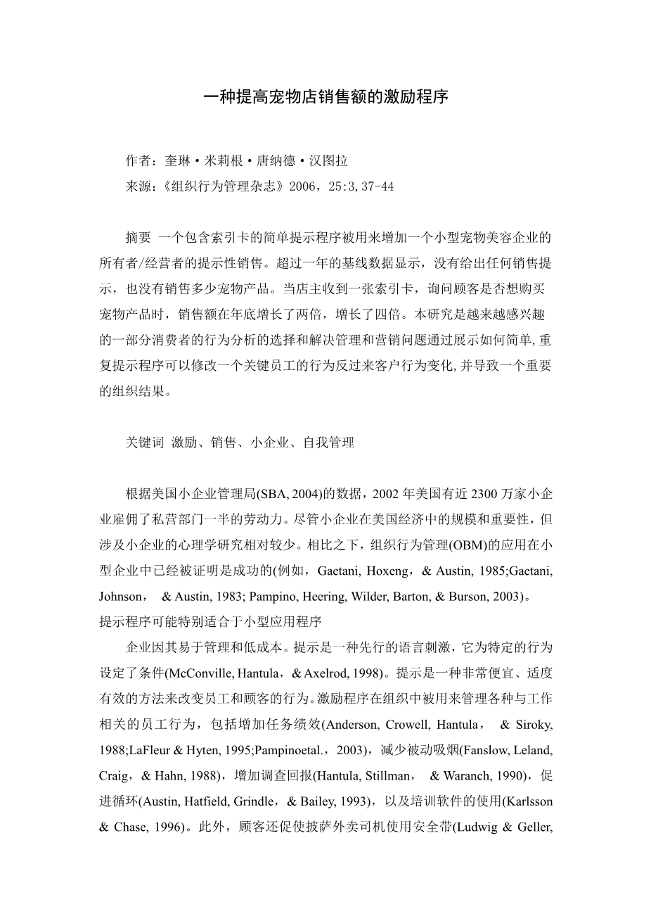 一种提高宠物店销售额的激励程序外文翻译资料