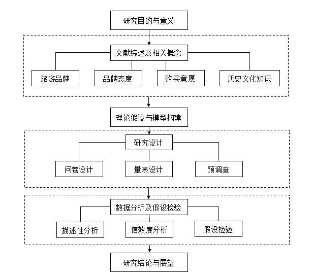 第二章为文献综述和相关概念。主要介绍旅游品牌、品牌态度、购买意愿和历史文化知识这四个本文最为关键的概念,并界定其定义、维度。