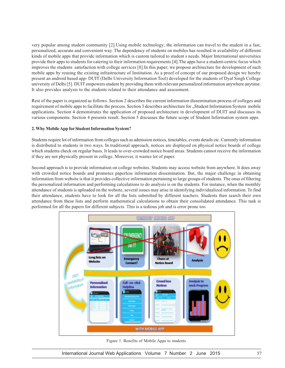 本文的其余部分安排如下:第2节介绍院校当前信息的传播过程,移动应用的需求,以促进这一进程。第3节描述学生信息系统的移动应用程序的架构。第4节演示了德里大学信息工具的应用程序的体系结构的发展,并讨论其各种组件。第4节提出了结果。第5节讨论学生信息系统应用的未来趋势。